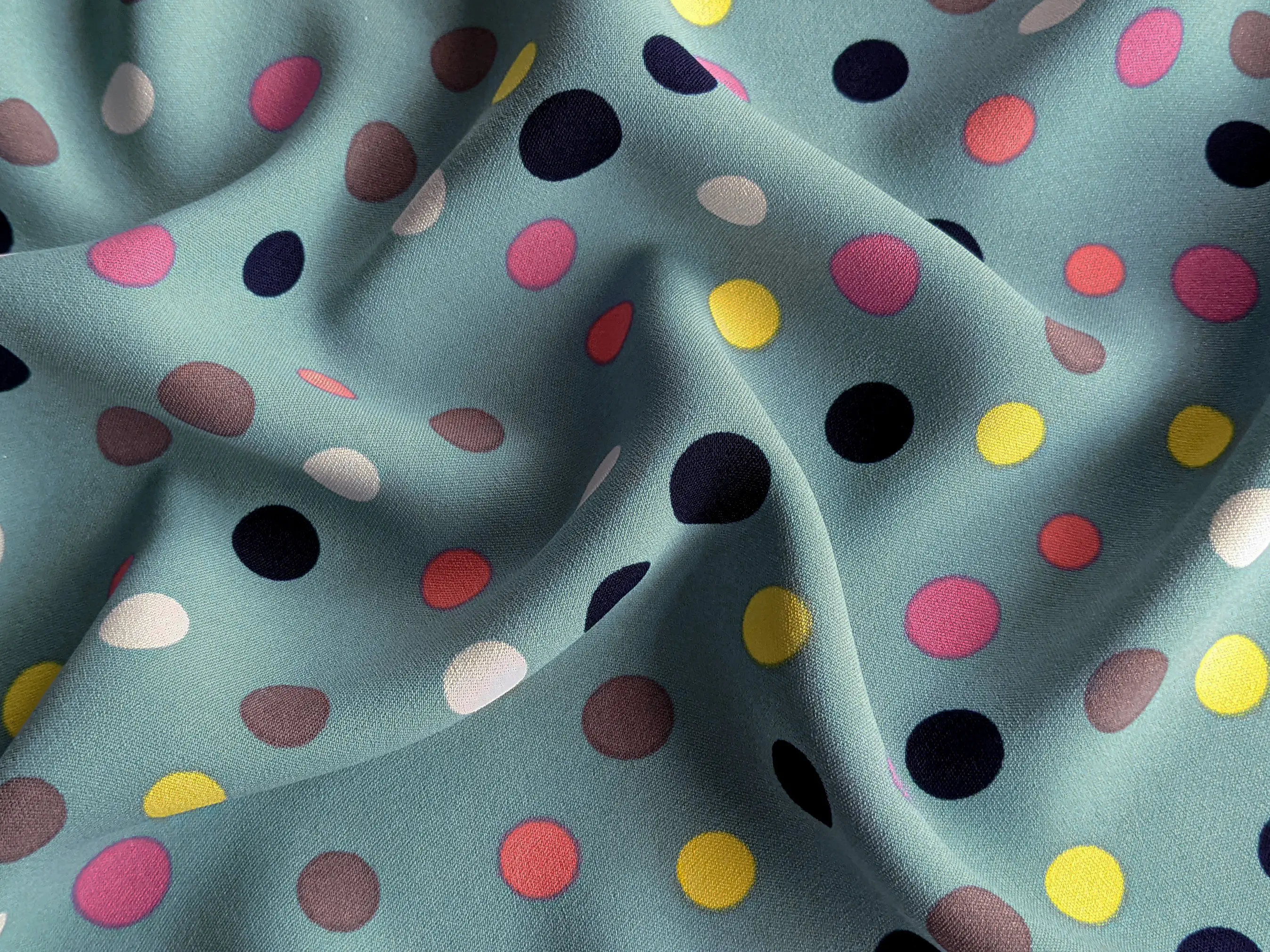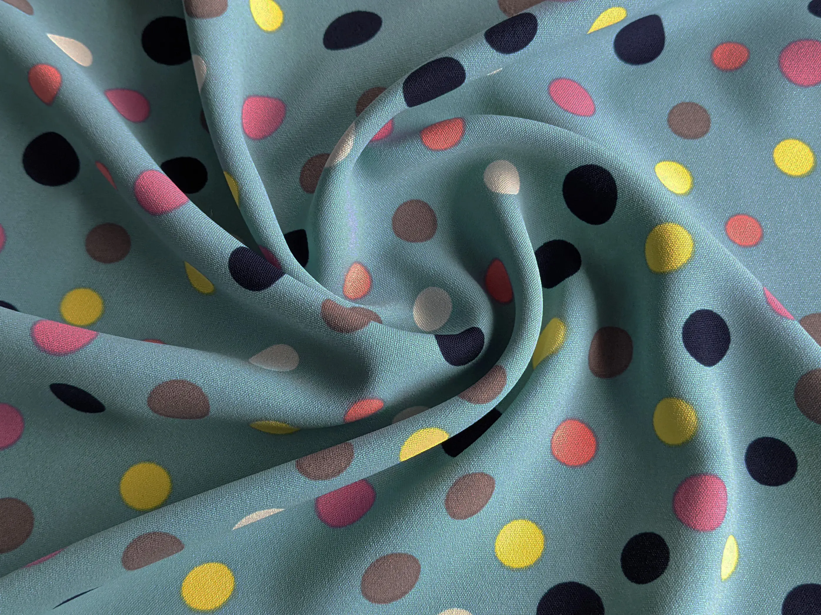 Американский креп рисунок разноцветные горошки, полынь (отрез 0,5 м)
