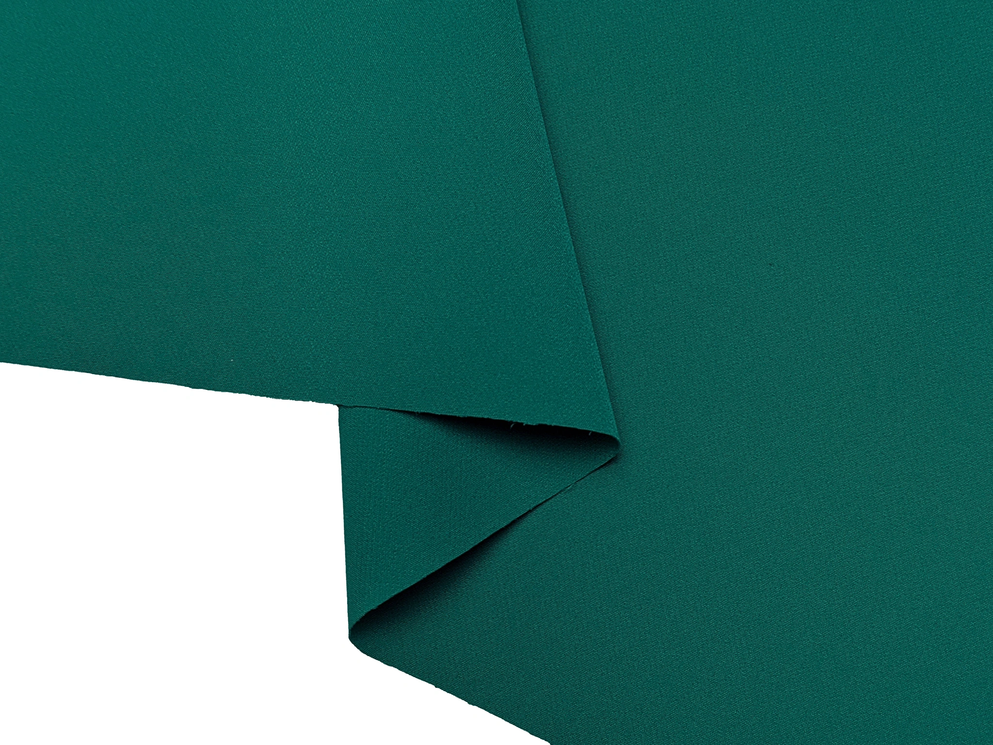 Барби креп - разновидность диагональной костюмной ткани. Креповое полотно. Хорошо держит форму, не мнется. На свету и на теле не просвечивается, поэтому не нуждается в подкладочной ткани. Немного тянется в обе стороны. Применяется для пошива брюк, костюмов, жакетов, юбок, комбинезонов. Можно использовать как однотонную основу для нарядных платьев.