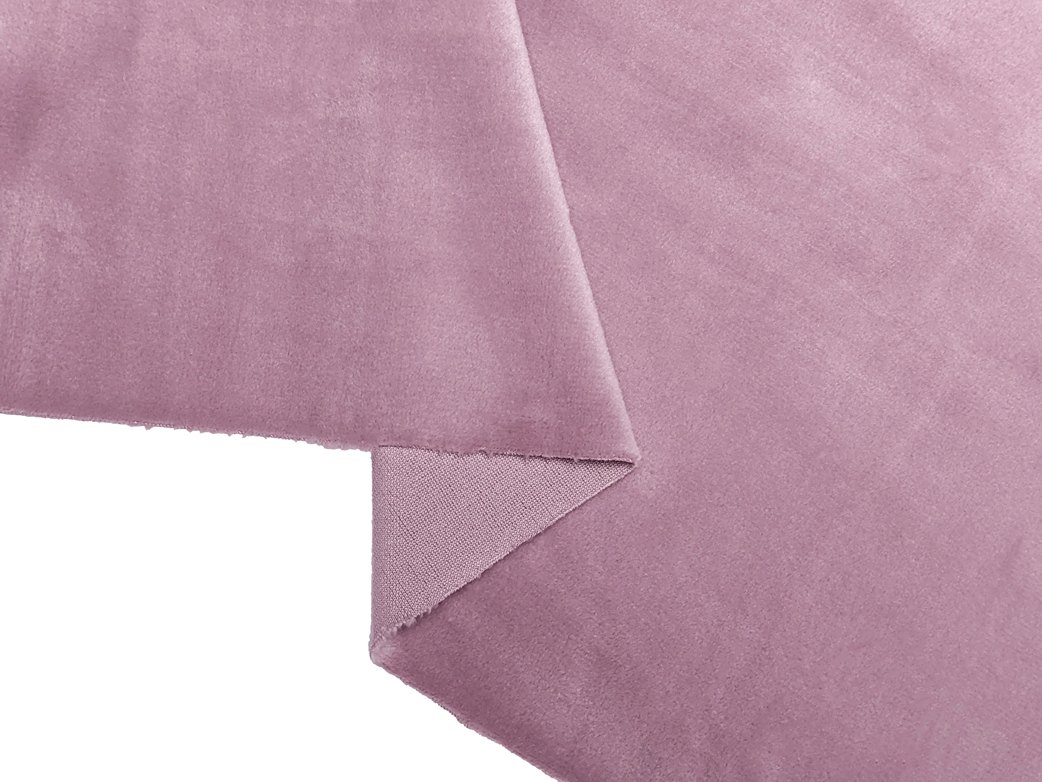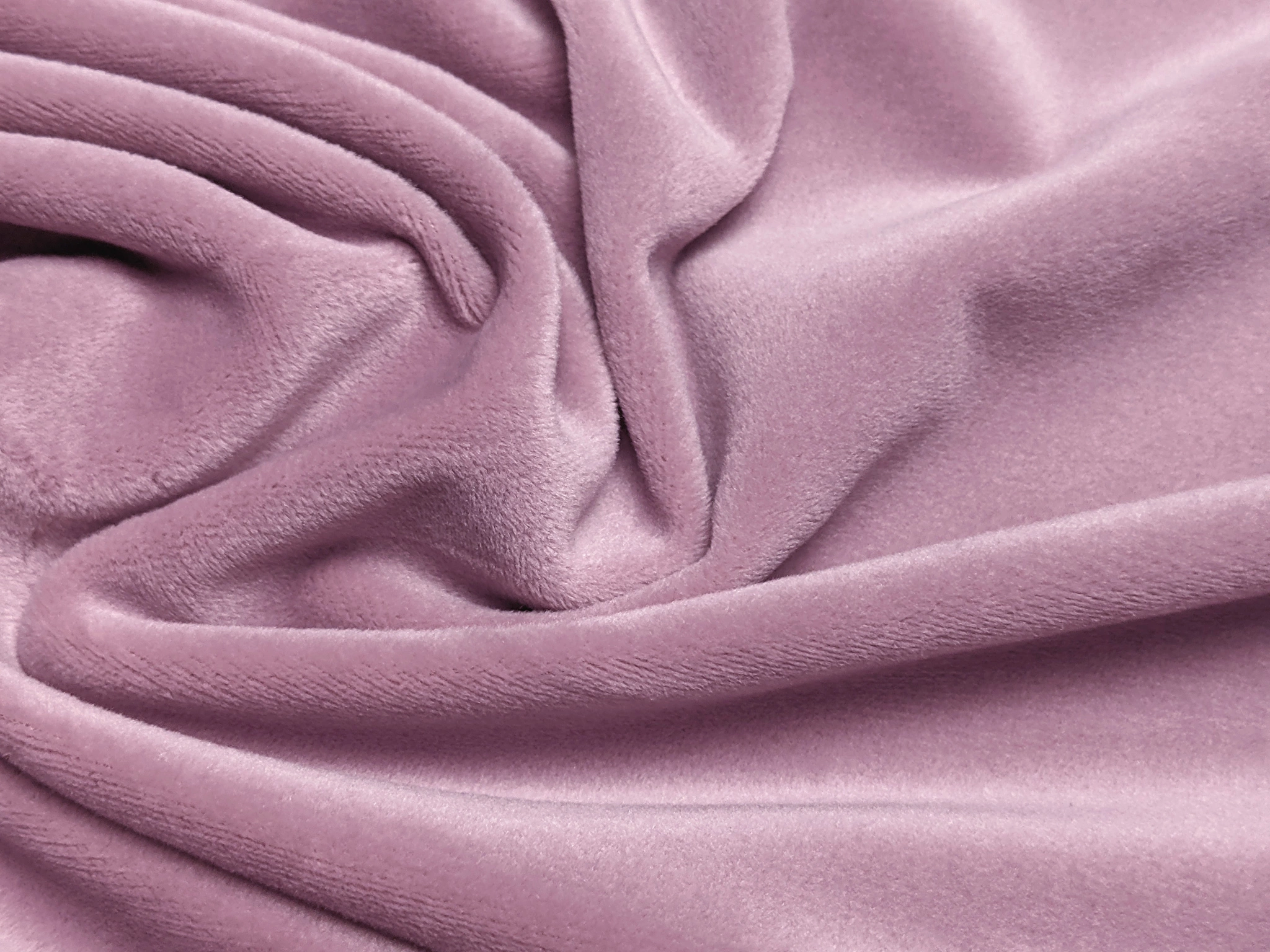 Плюшевый бархат - элегантный и мягкий на ощупь. Полотно имеет среднюю плотность, равномерный ворс и однородный окрас. В составе присуствует спандекс, благодаря которому он великолепно растягивается, хорошо облегает фигуру. Бархат износостойкий, при длительном использовании не теряет внешнего вида, не теряет окрас, не деформируется. В уходе не капризен.