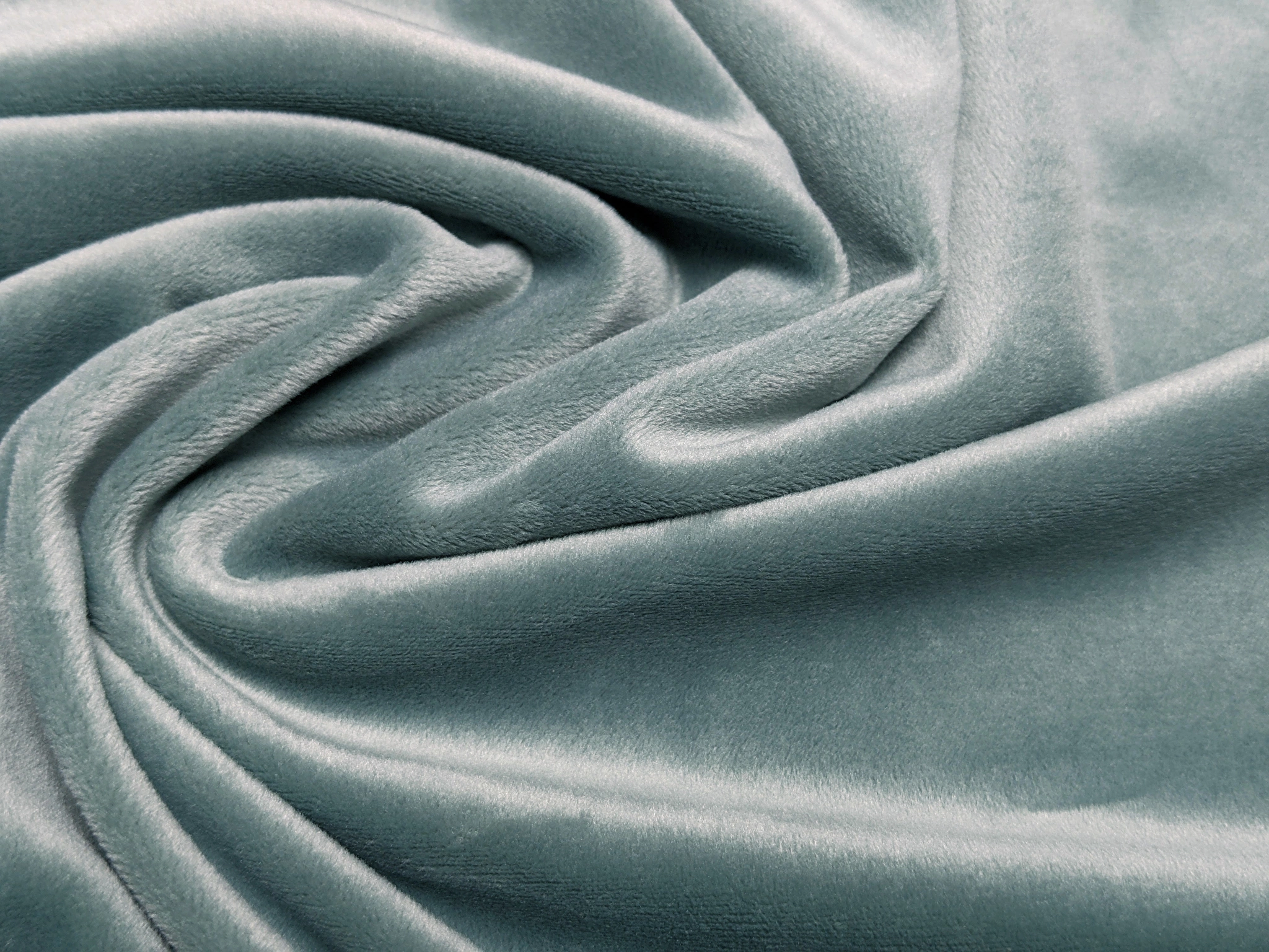 Плюшевый бархат - элегантный и мягкий на ощупь. Полотно имеет среднюю плотность, равномерный ворс и однородный окрас. В составе присуствует спандекс, благодаря которому он великолепно растягивается, хорошо облегает фигуру. Бархат износостойкий, при длительном использовании не теряет внешнего вида, не теряет окрас, не деформируется. В уходе не капризен.
