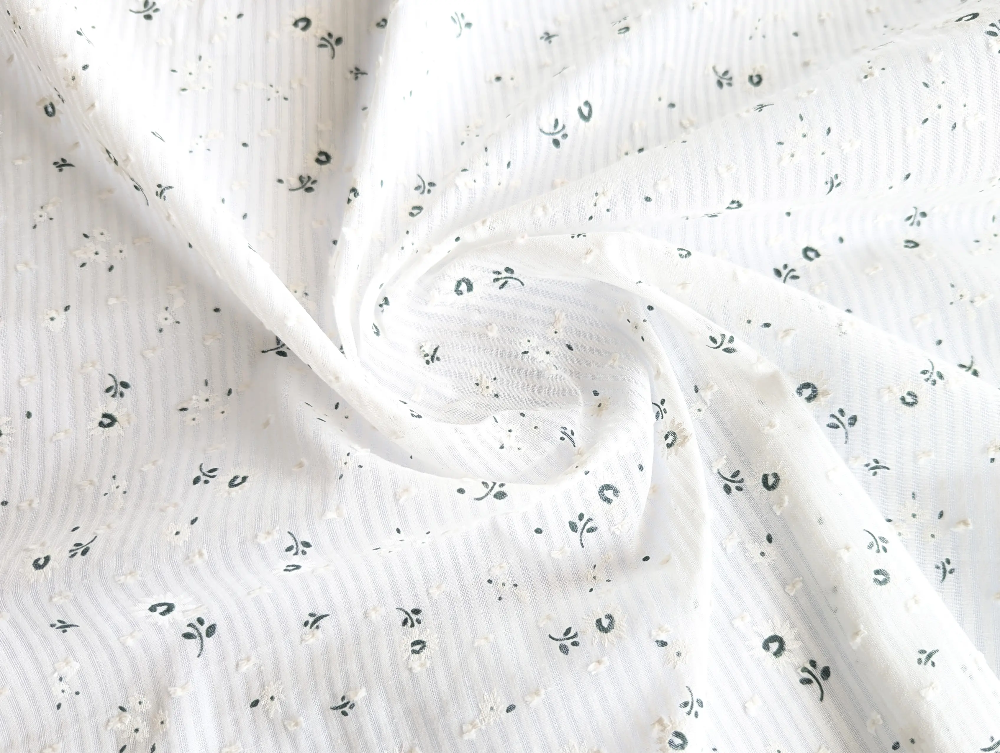 Батист прожиг мушка цветочки, белый (отрез 1,4 м)