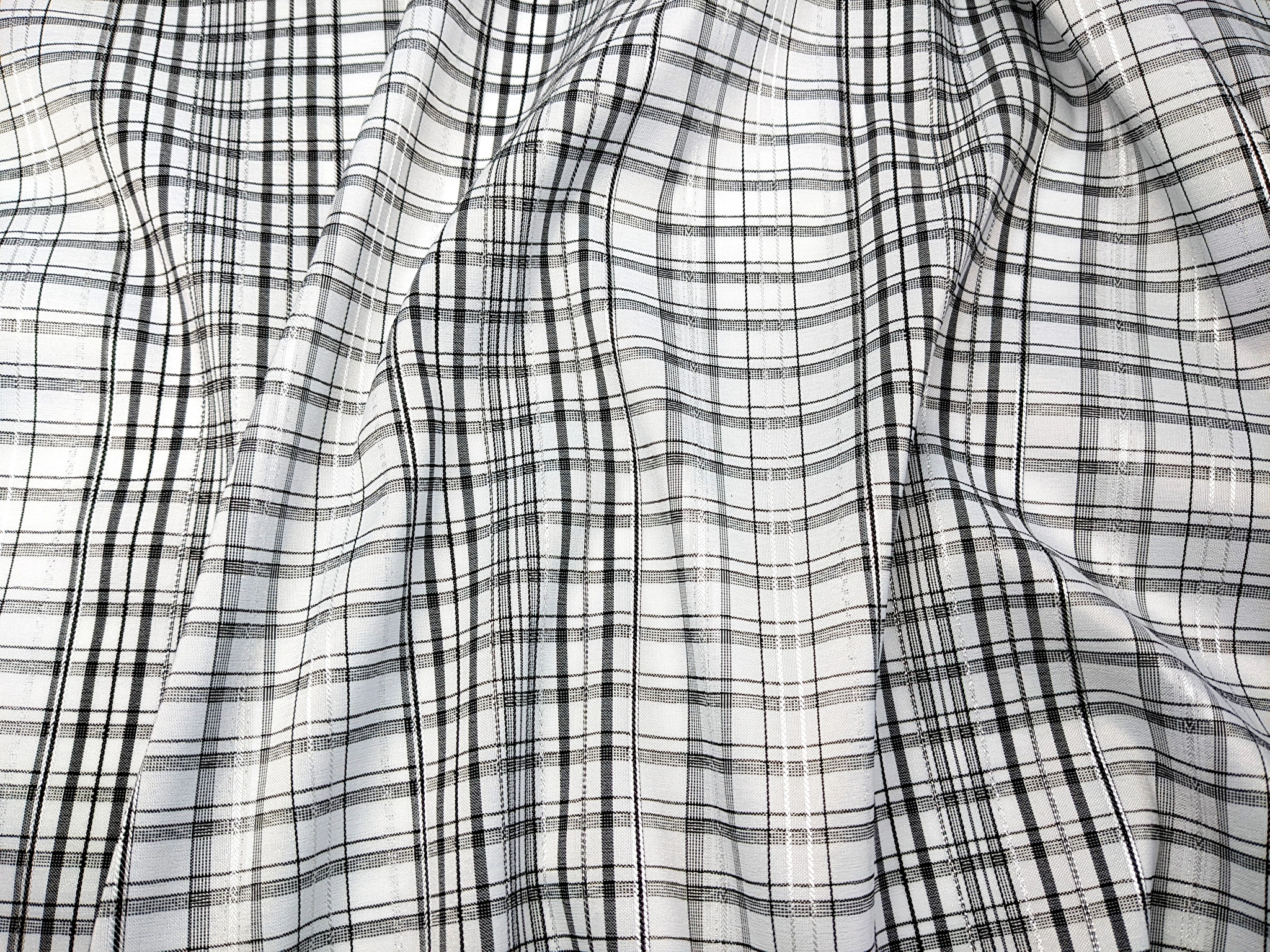 Бенгалин - легкая, мягкая, приятная на ощупь ткань. Вкрапление люрексовых нитей создает мерцающий узор на лицевой стороне. Ткань не сминается, слегка тянется вдоль кромки полотна, непрозрачная на теле, драпируется, образуя стойкие складки.