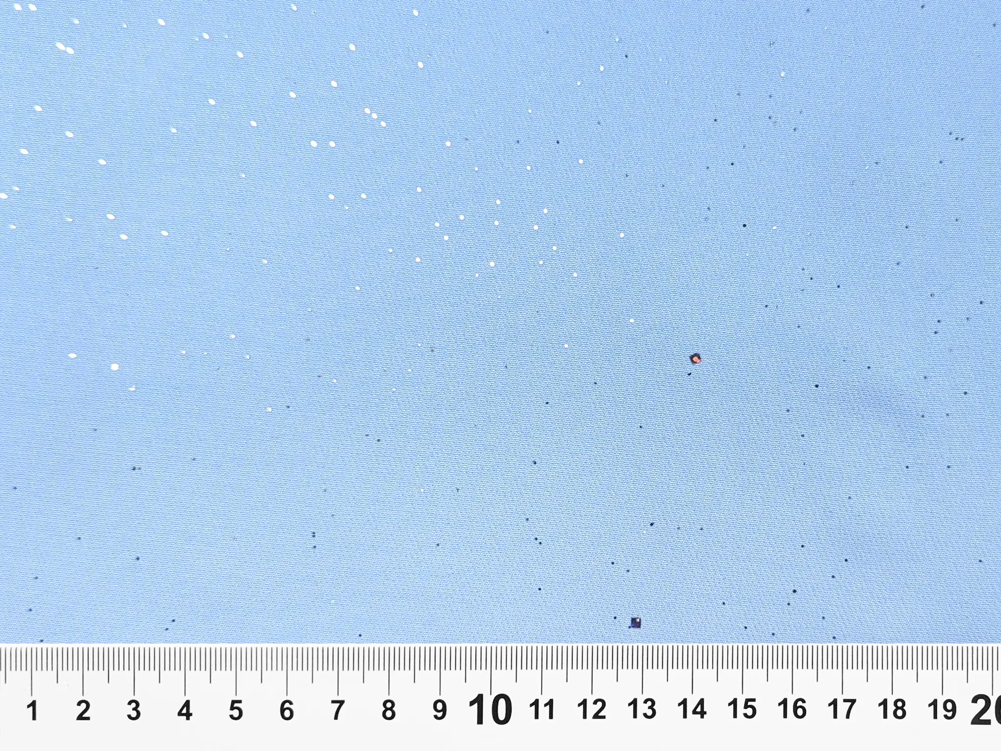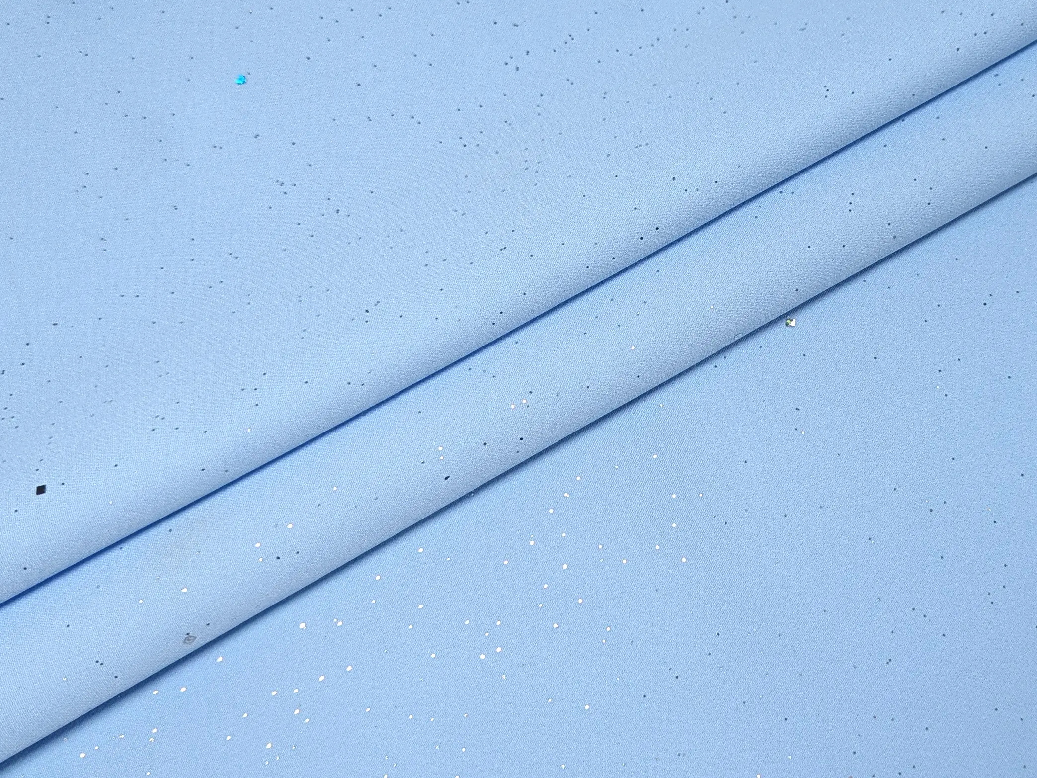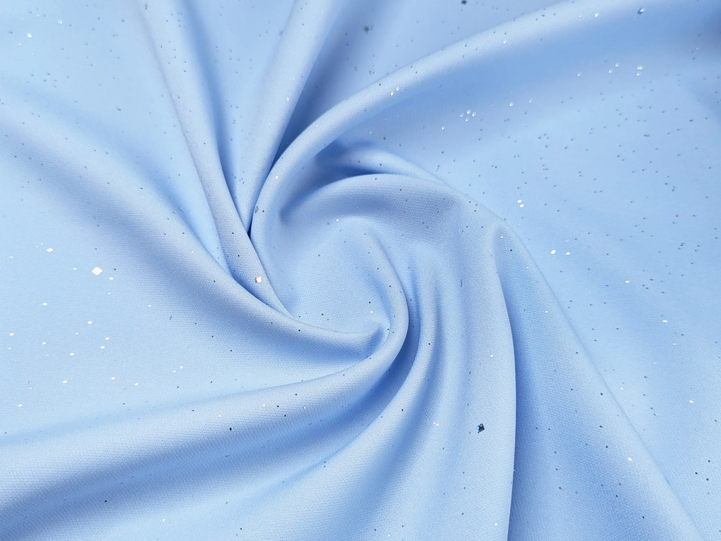 Дополнительно ткань украшена мелким глиттером в виде звёздного неба, который придаёт ей изысканное мерцание. Блёстки надёжно закреплены в материале и не осыпаются, что делает её не только эффектной, но и практичной в использовании.