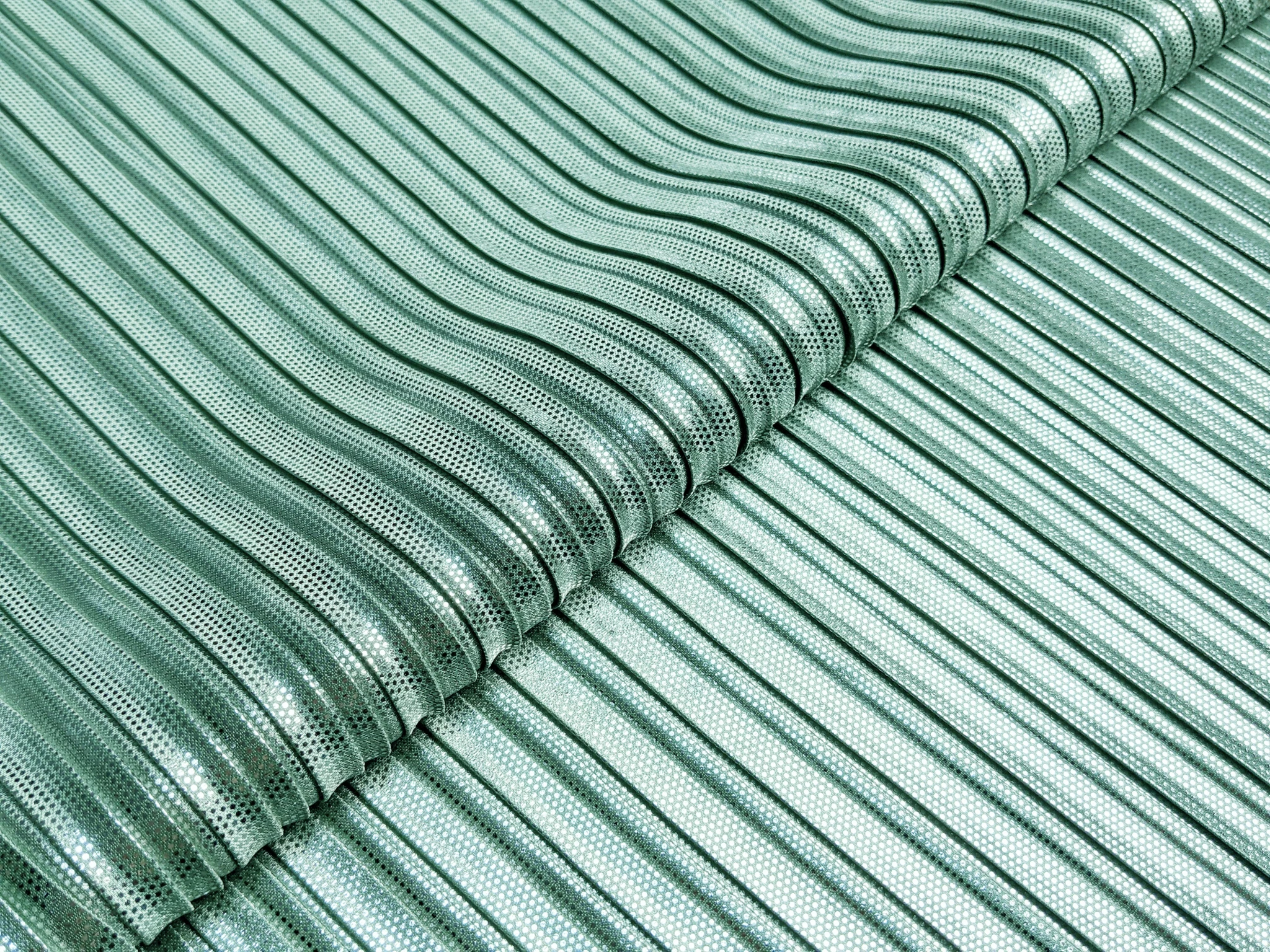 Диско плиссе - это трикотажное полотно с блеском, выполнено в виде складок поперек кромки. Размер складки около 7 мм и глубина 2 мм. Полотно имеет поперечный стрейч, что нужно учесть при шитье. Ткань плиссе выглядит очень эффектно, изыскано, женственно, воздушно и имеет струящиеся эффект. Вертикальные складки ткани вытягивают фигуру, подчеркивая ваши достоинства.