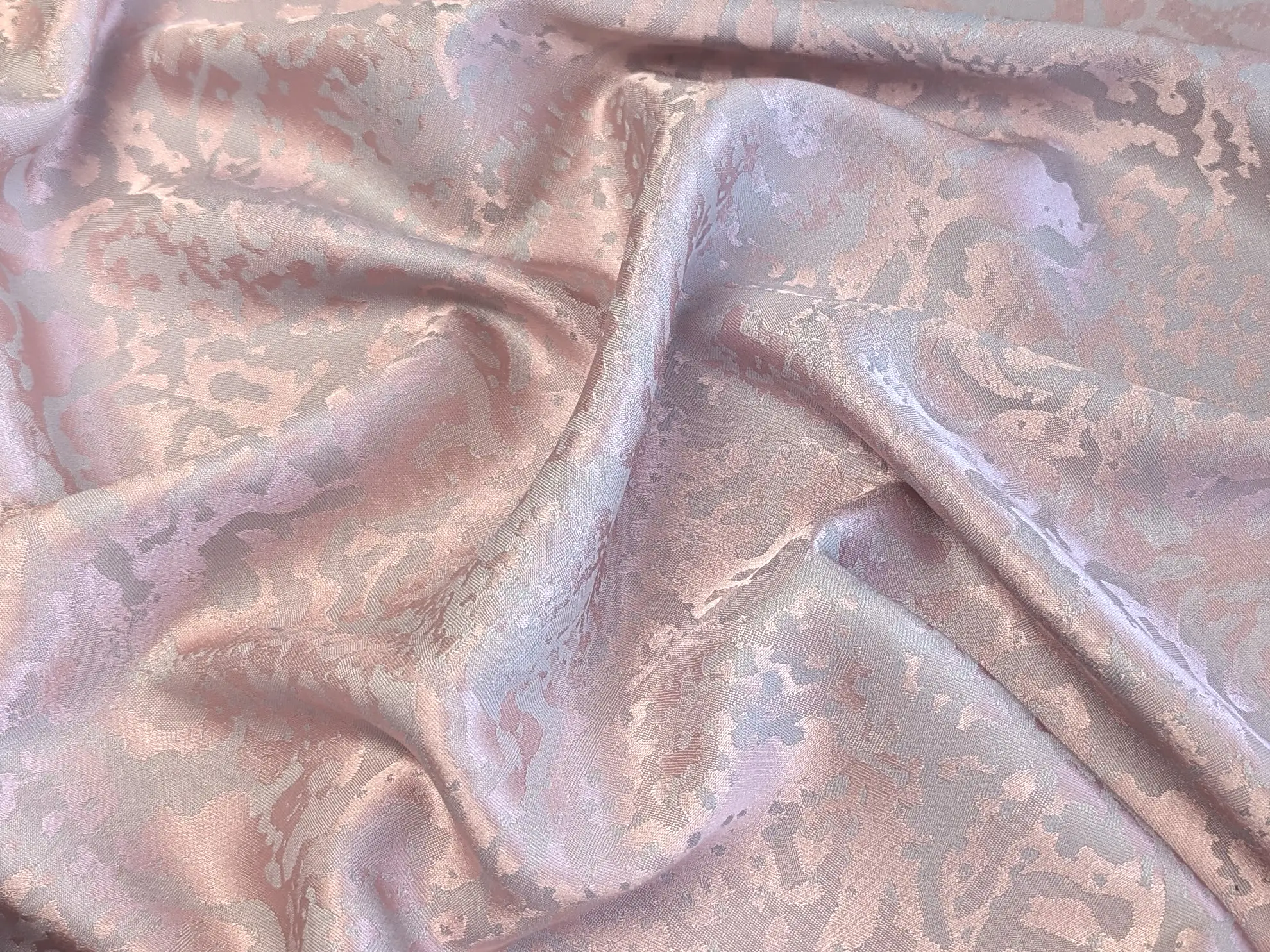 Код: в37, 2509080G, д1, к2Двусторонний вискозный жаккард - это ткань, которая красиво драпируется, образуя мягкие и воздушные складки придавая изделиям элегантный вид. Материал не тянется, хорошо пропускает воздух. Благодаря натуральным волокнам в составе ткань приятная к телу, но может немного сминаться. Полотно достаточно плотное и не просвечивает на теле даже в светлых оттенках, поэтому его можно использовать без дополнительной подкладки. Благодаря двусторонней жаккардовой фактурере ткань можно использовать как с лицевой, так и с изнаночной стороны - рисунок в любом случае будет смотреться изящно и эффектно.