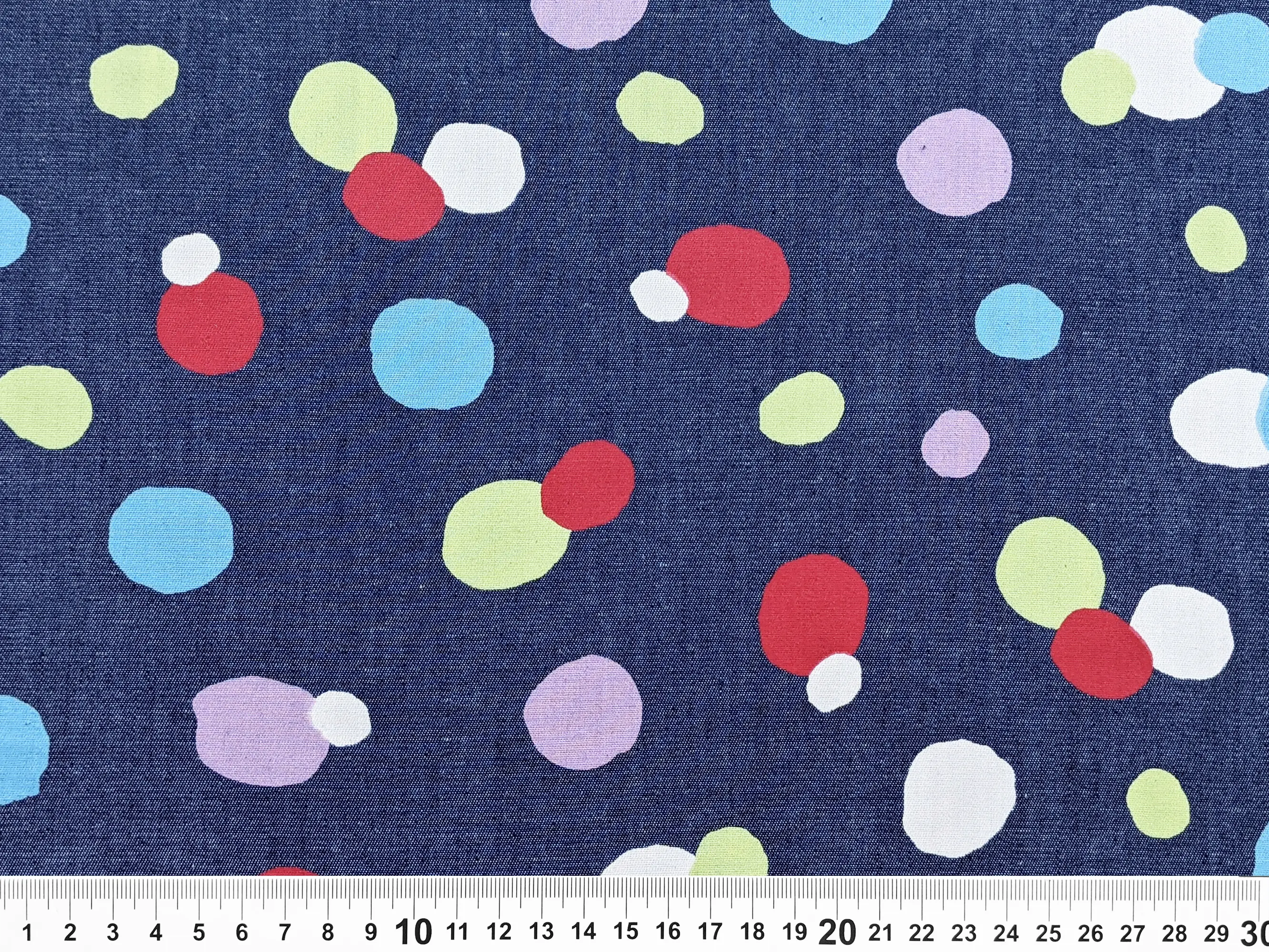 Джинс коттон яркие горохи с красным, темно-голубой (отрез 0,5 м) (д71, 15475, д2 цв1)