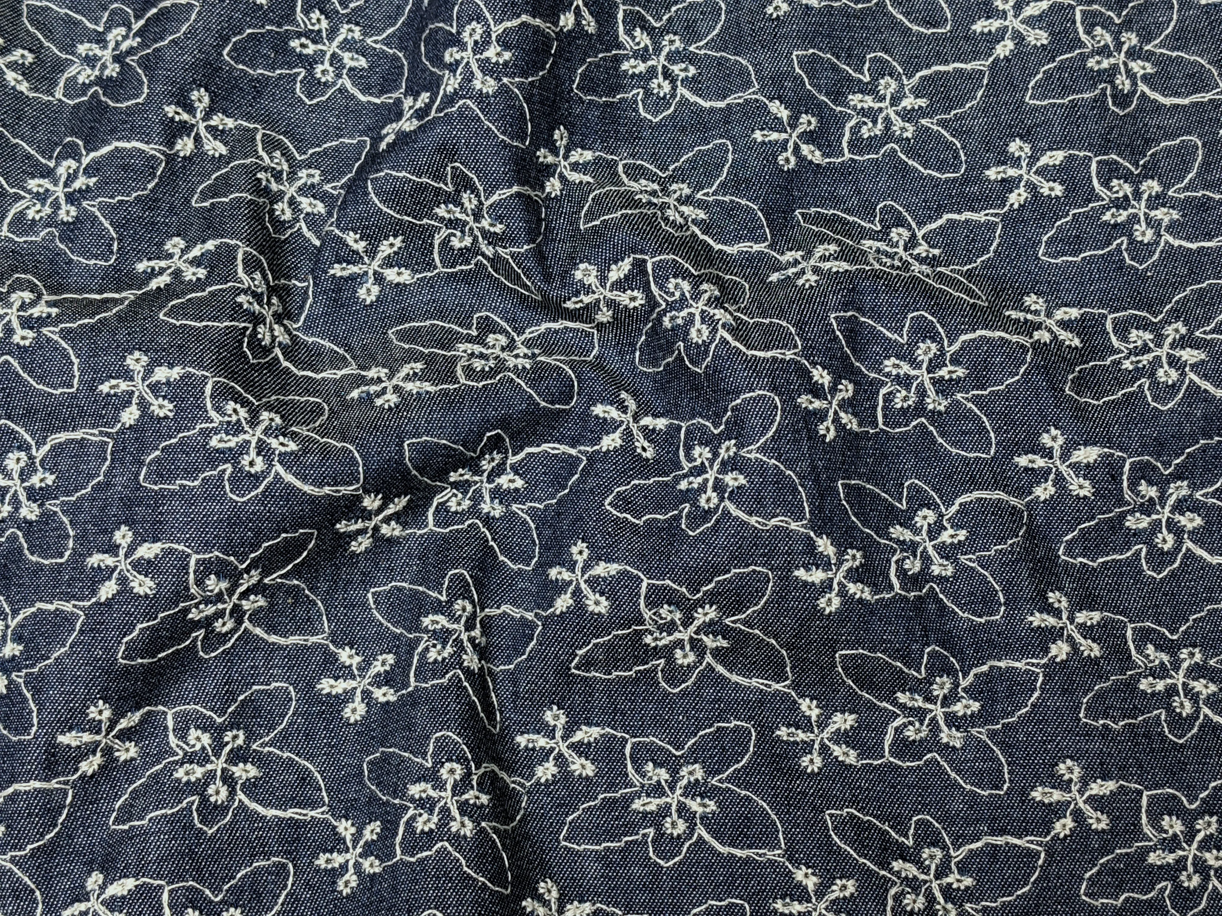 Джинс прошва цветочный, синий (отрез 0,8 м)