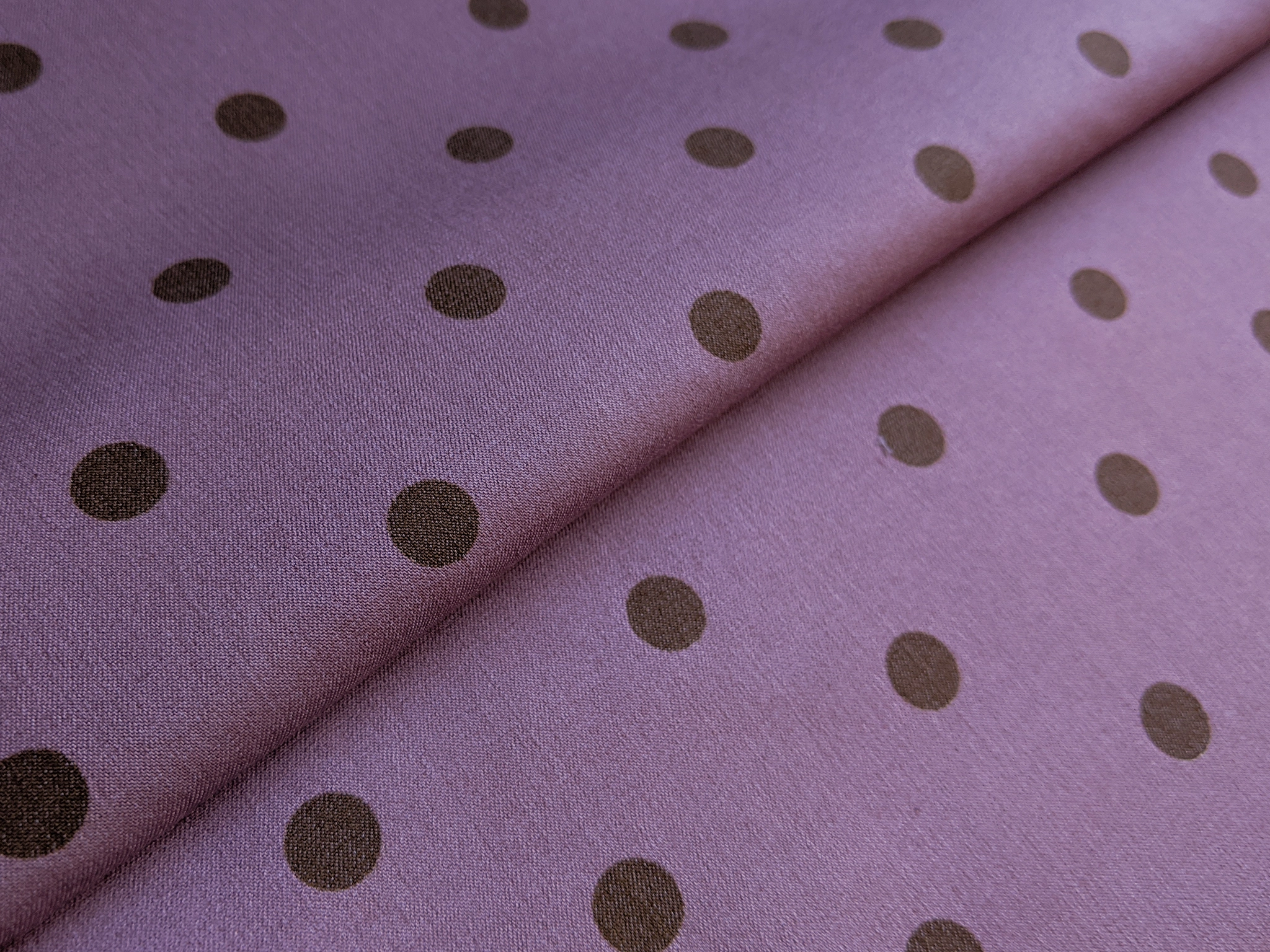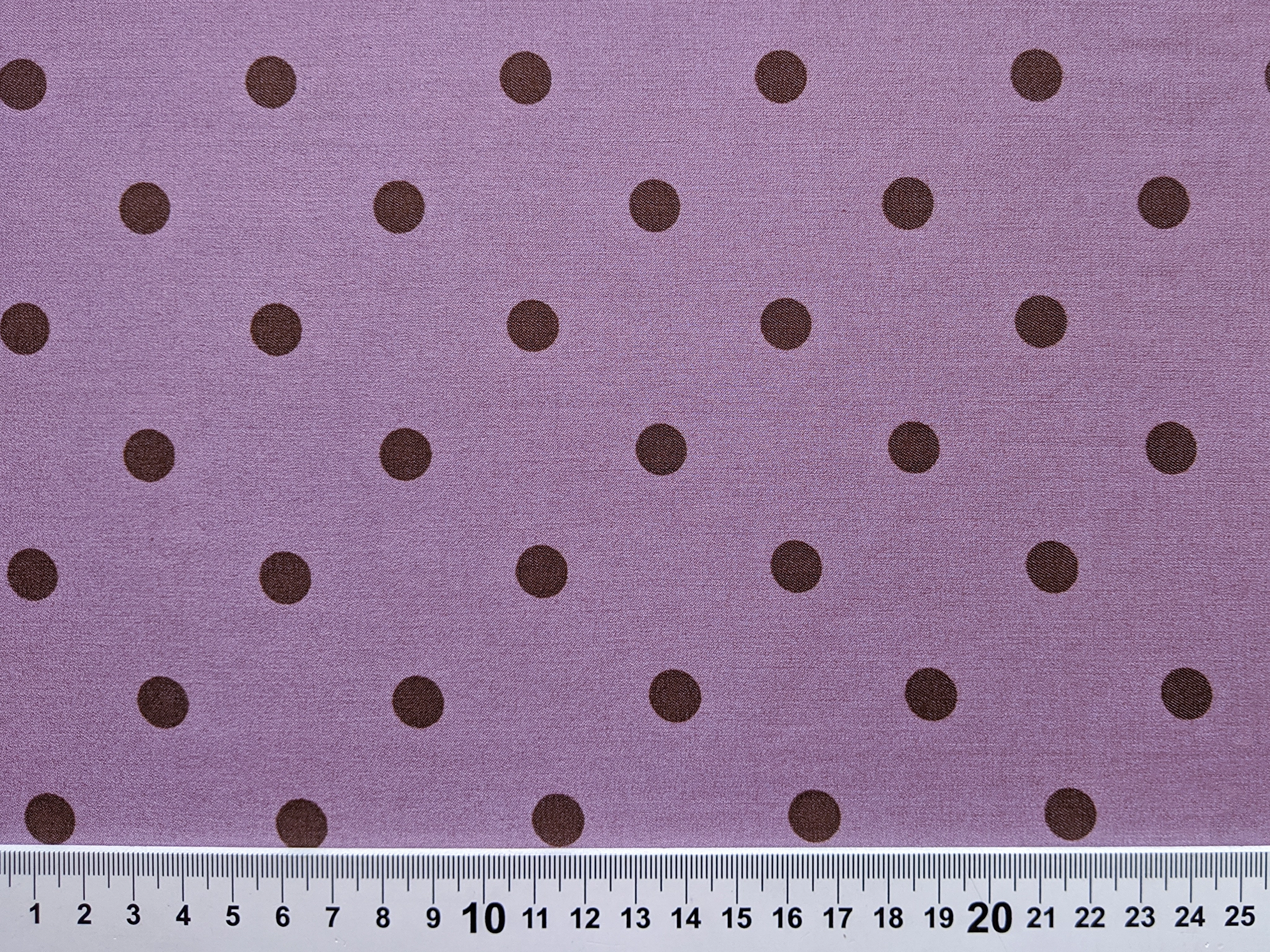 Джинс тенсел горох 10 мм, коричневый на розовом (отрез 1,5 м)