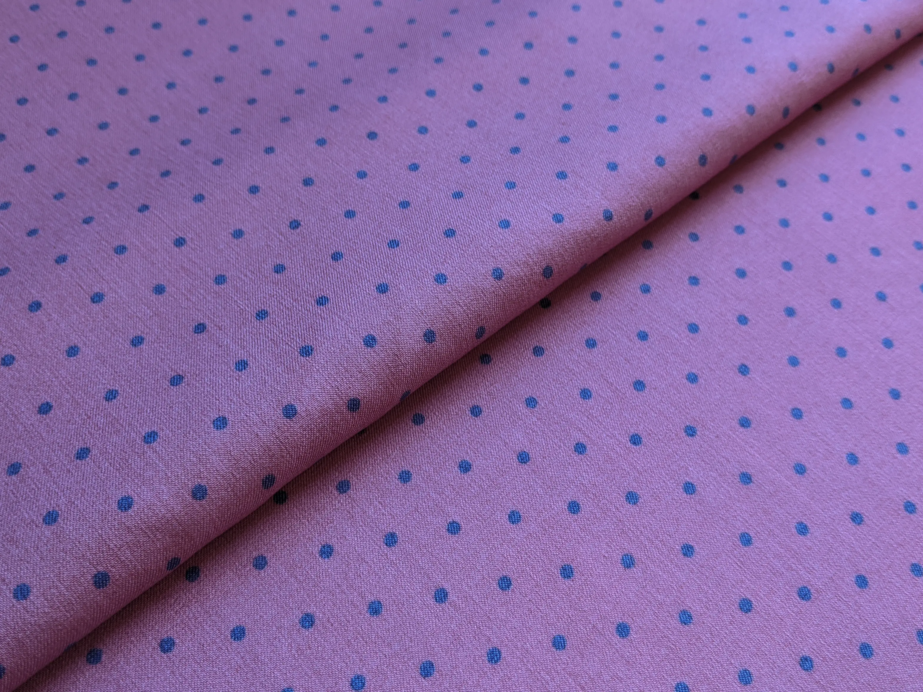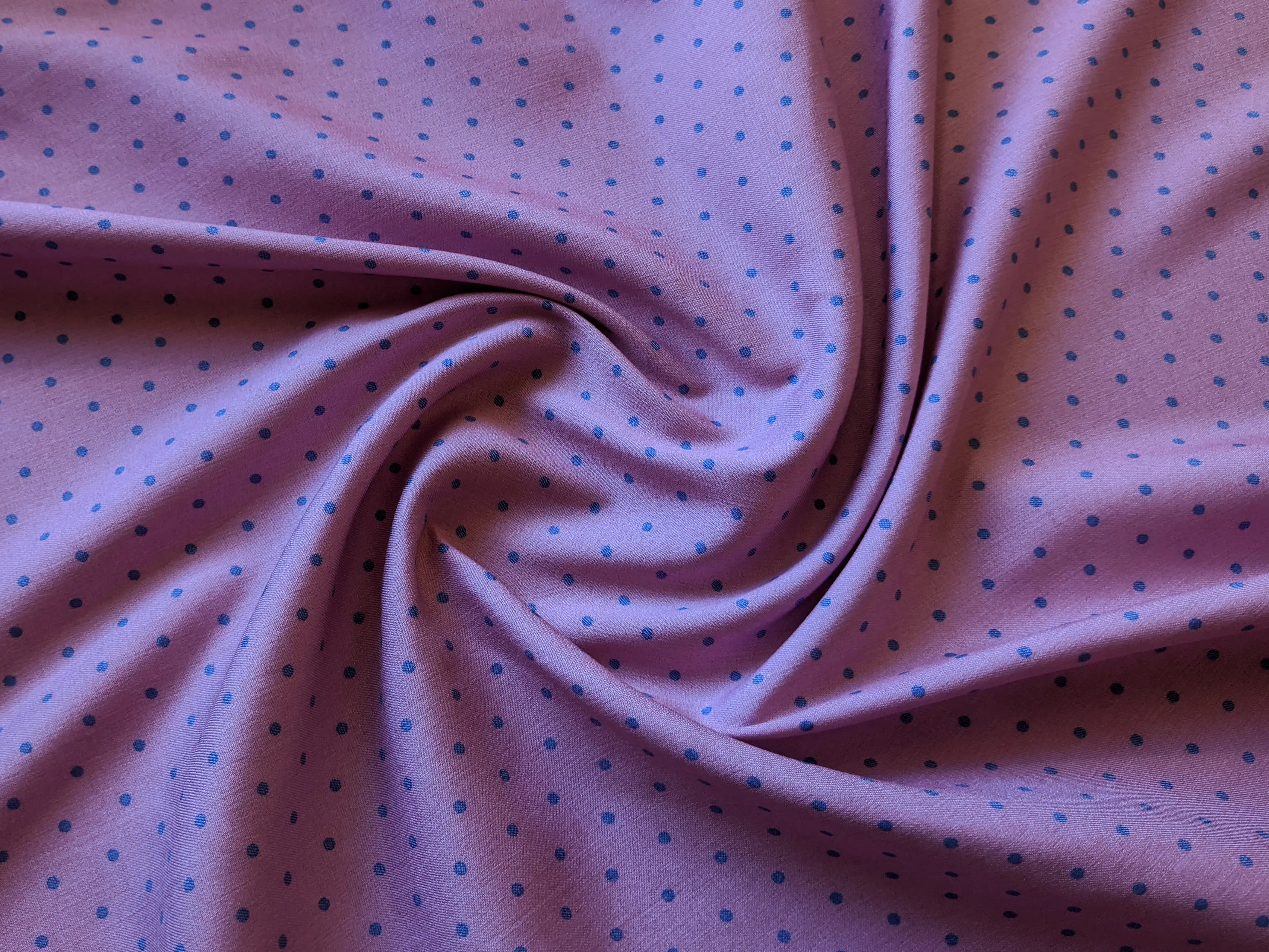 Джинс тенсел горошки 2 мм, синий на розовом (отрез 1 м) (д72, 1911041, д1 цв2)