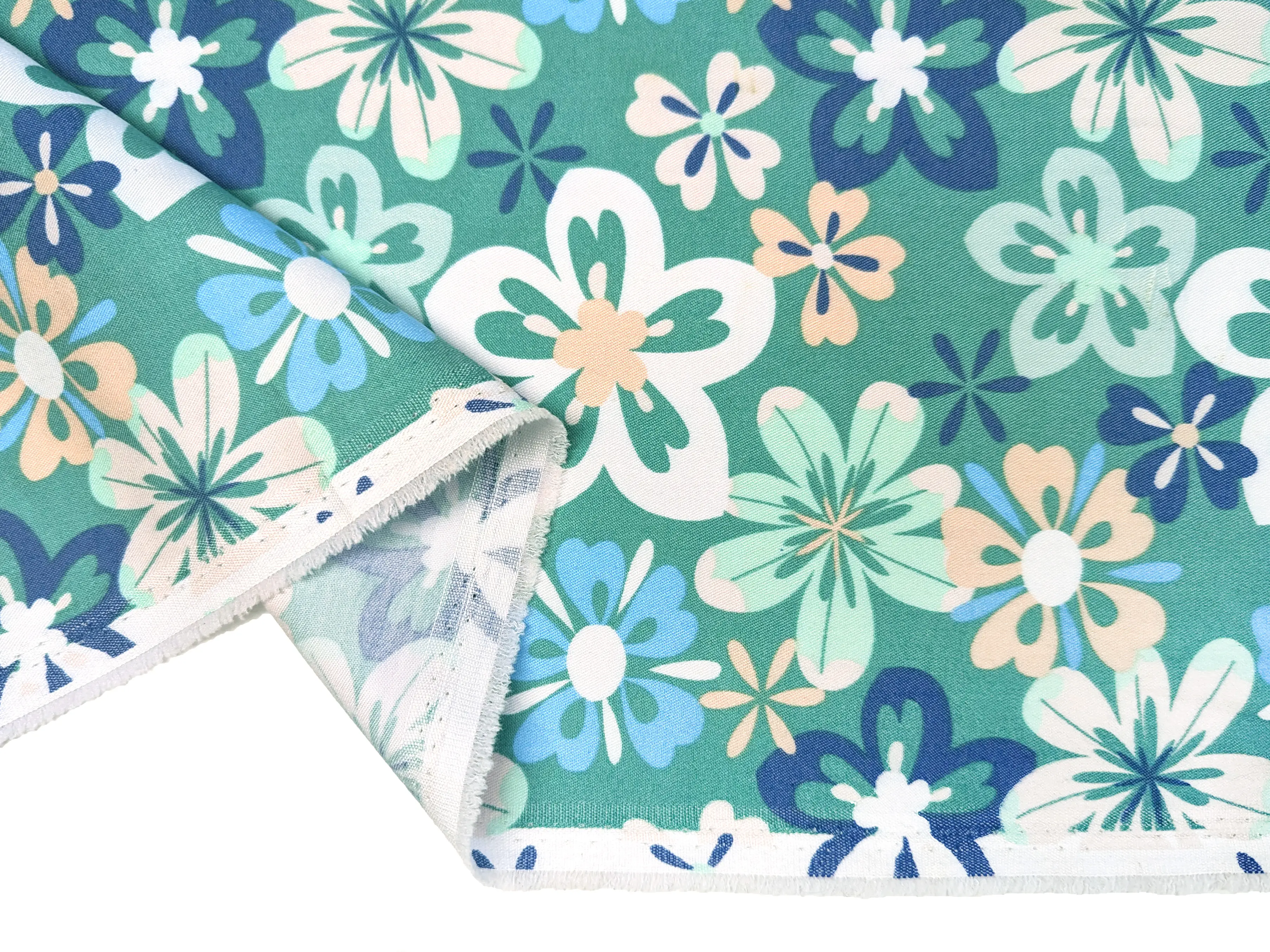Джинс тенсел цветочная полянка, мята (отрез 0,5 м) - интернет-магазин tkani-atlas.com.ua