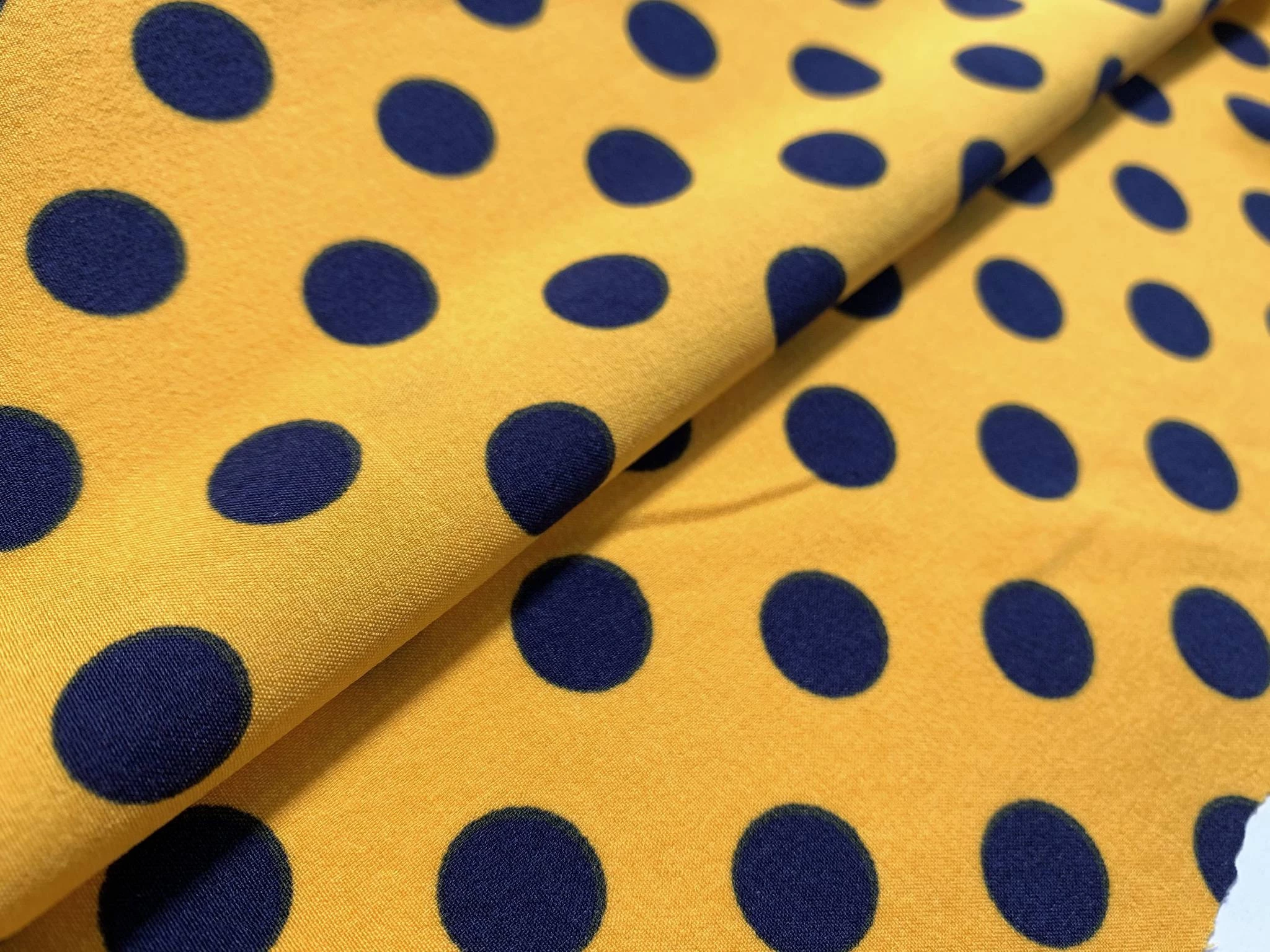 Французская вискоза софт горох 12 мм, синий на горчичном