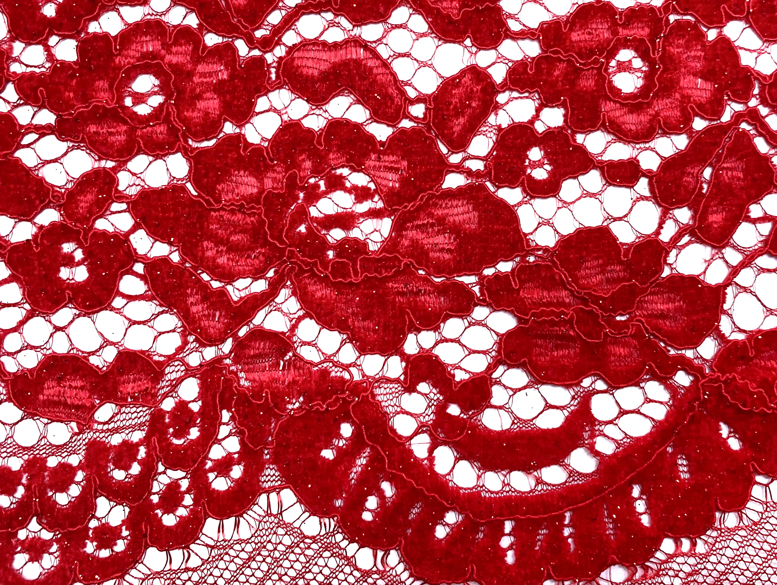Гипюр бархатный с блеском двухсторонний фестон, красный (отрез 1,7 м)