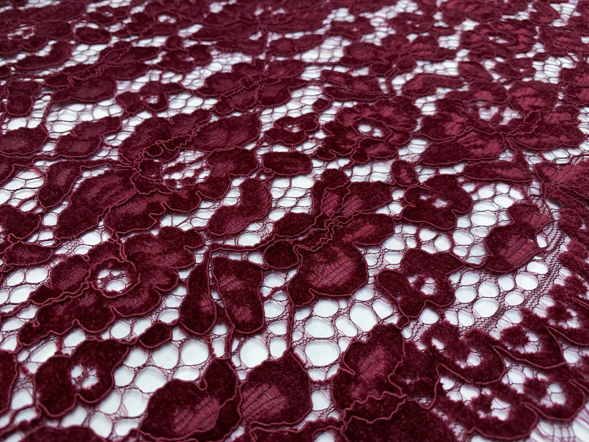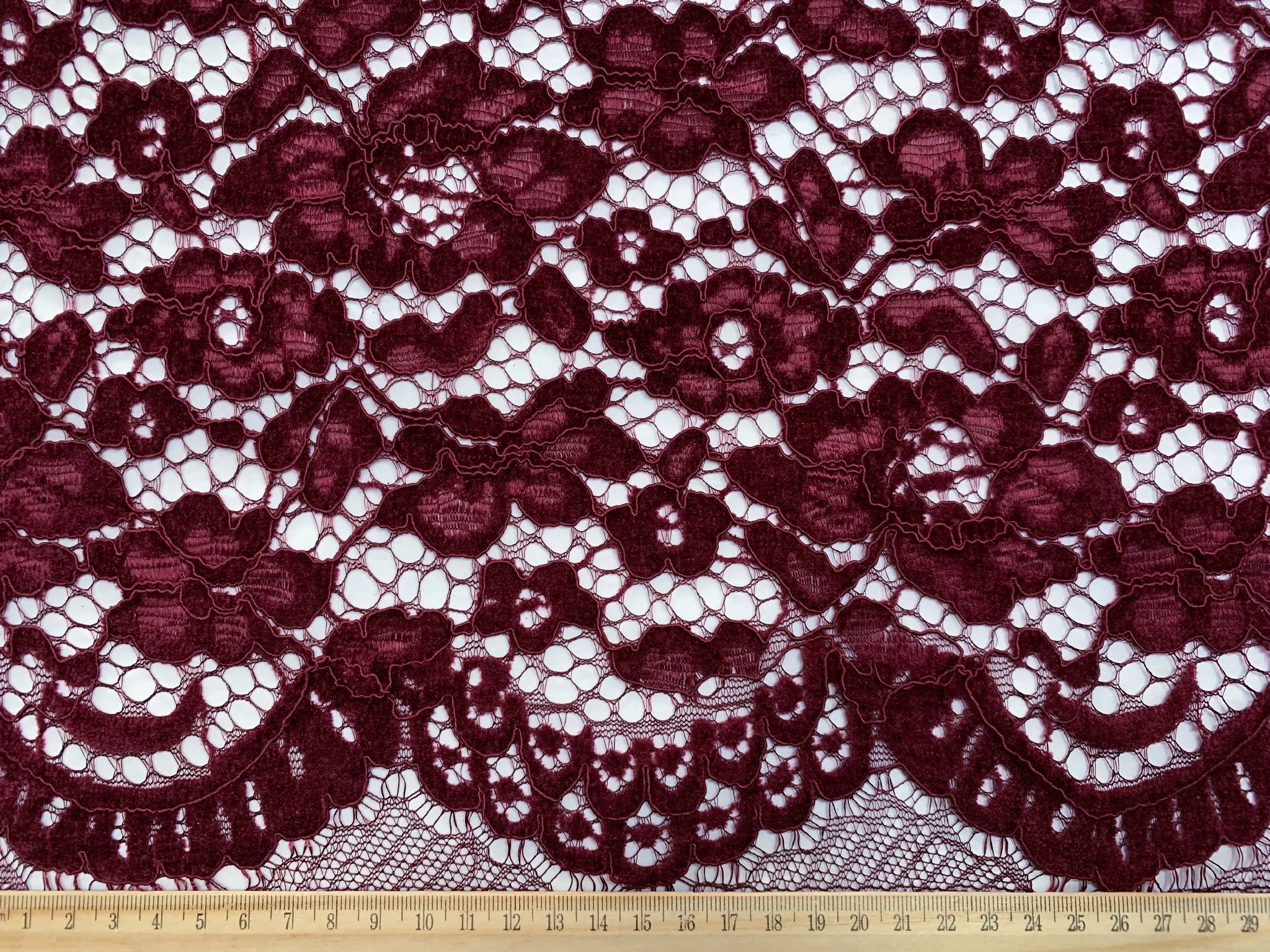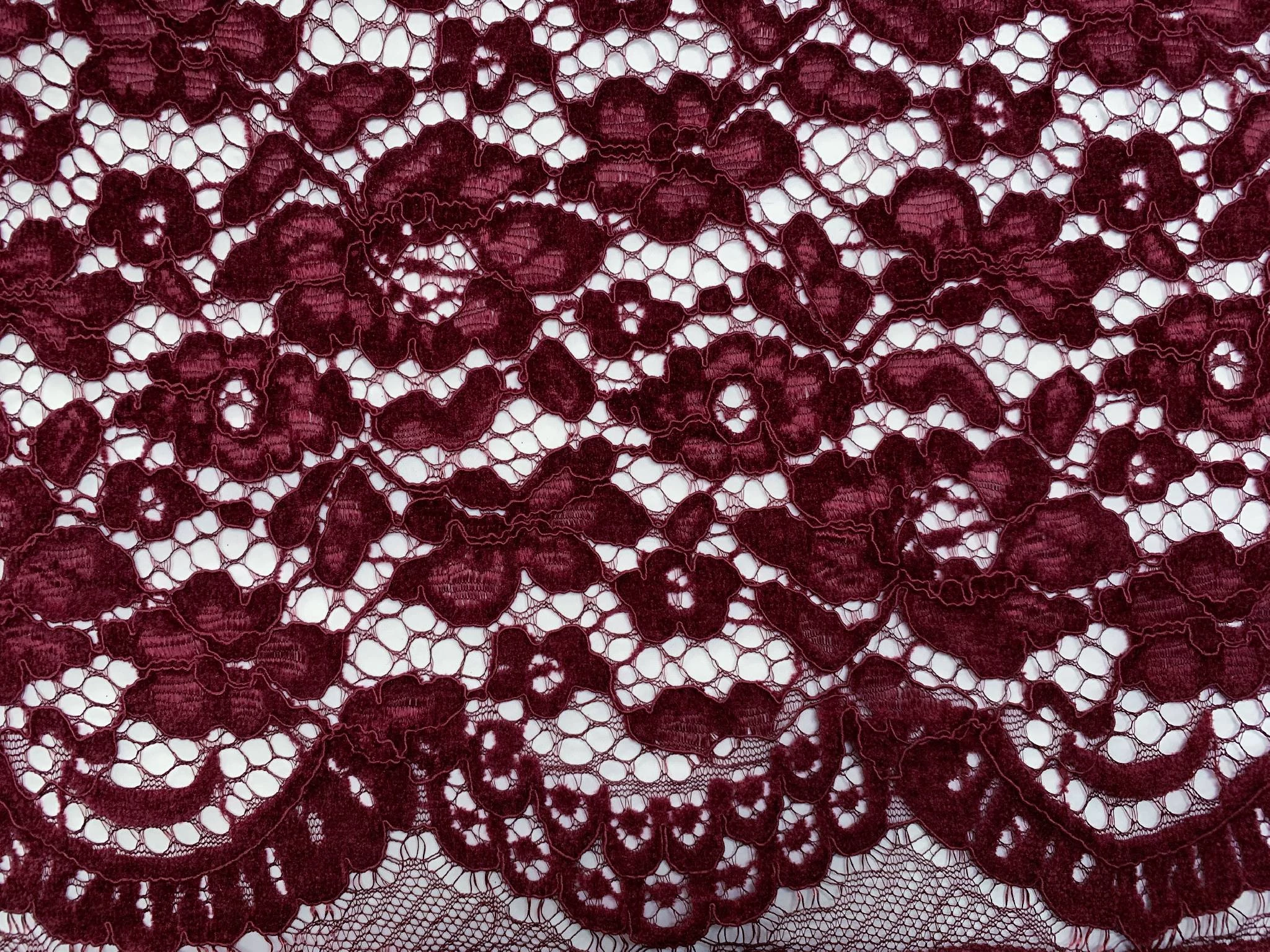 Гипюр бархатный двухсторонний фестон, бордовый