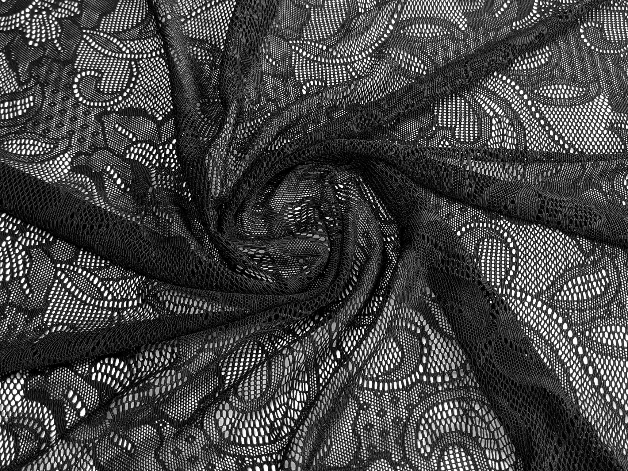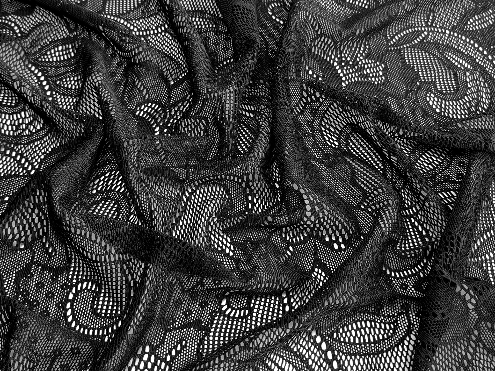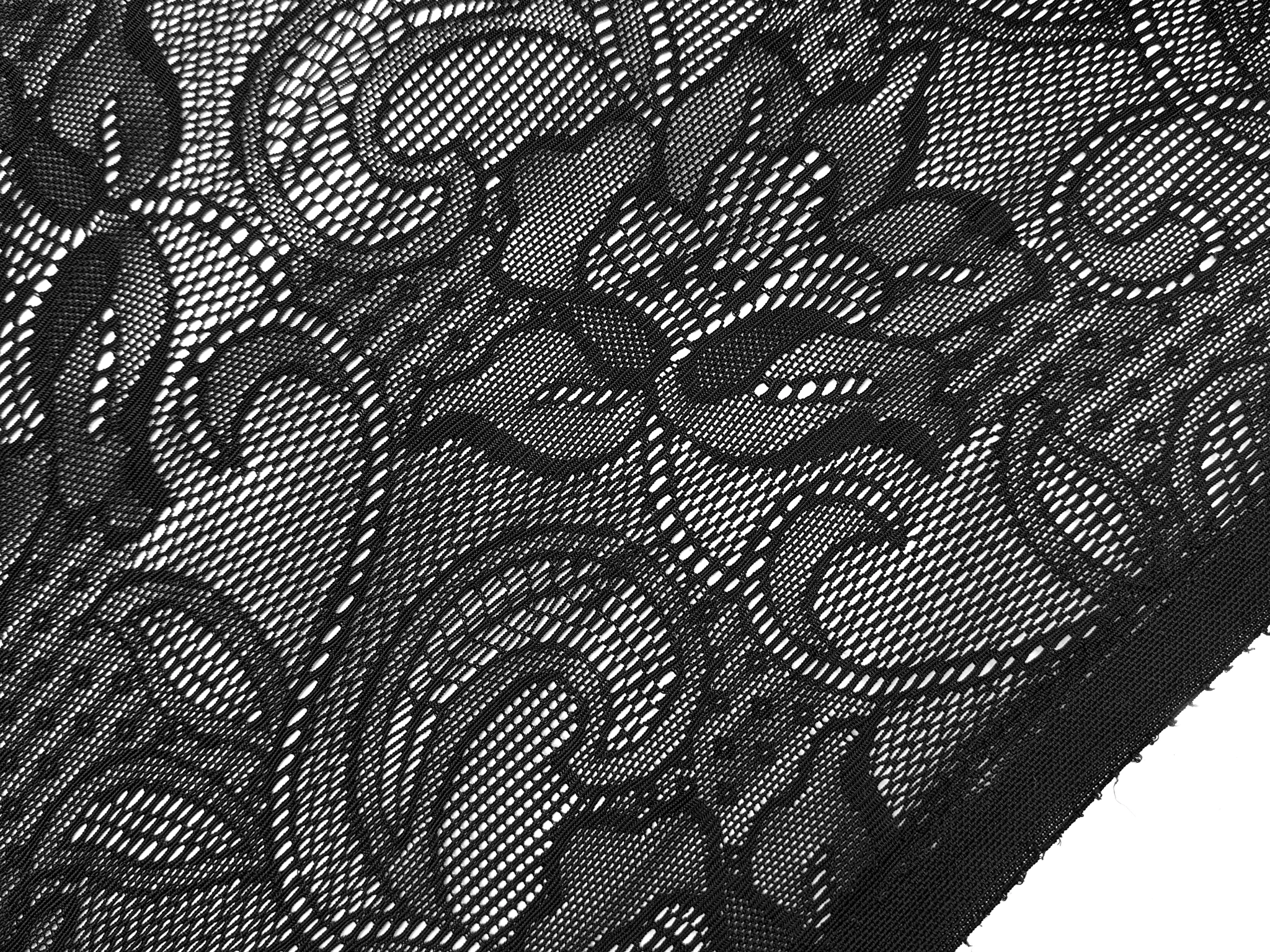 Гипюр Мармарис цветочное плетение, черный (отрез 2 м)