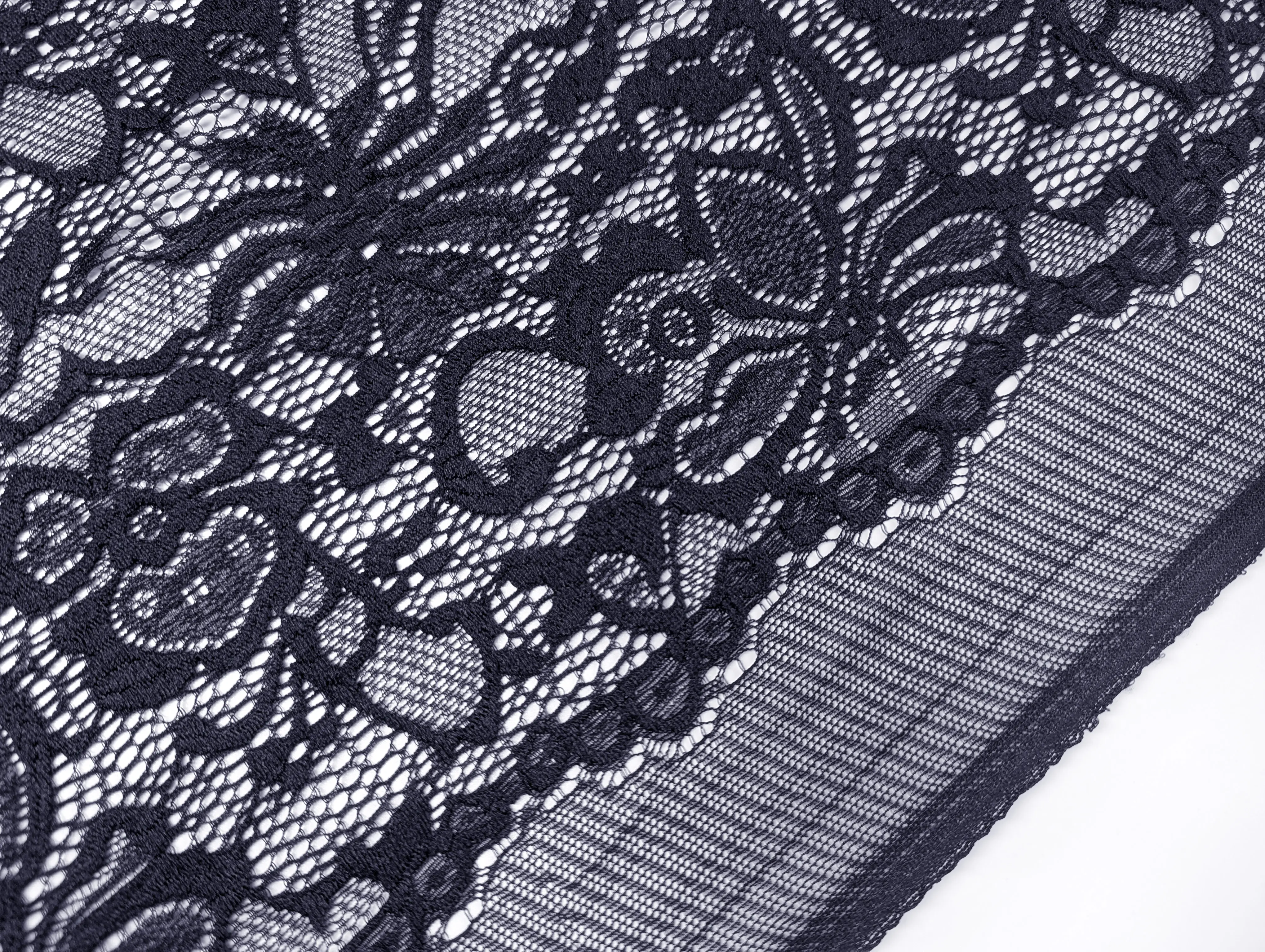 Гипюр стрейч Классика цветочная фантазия, темно-синий (отрез 2 м)