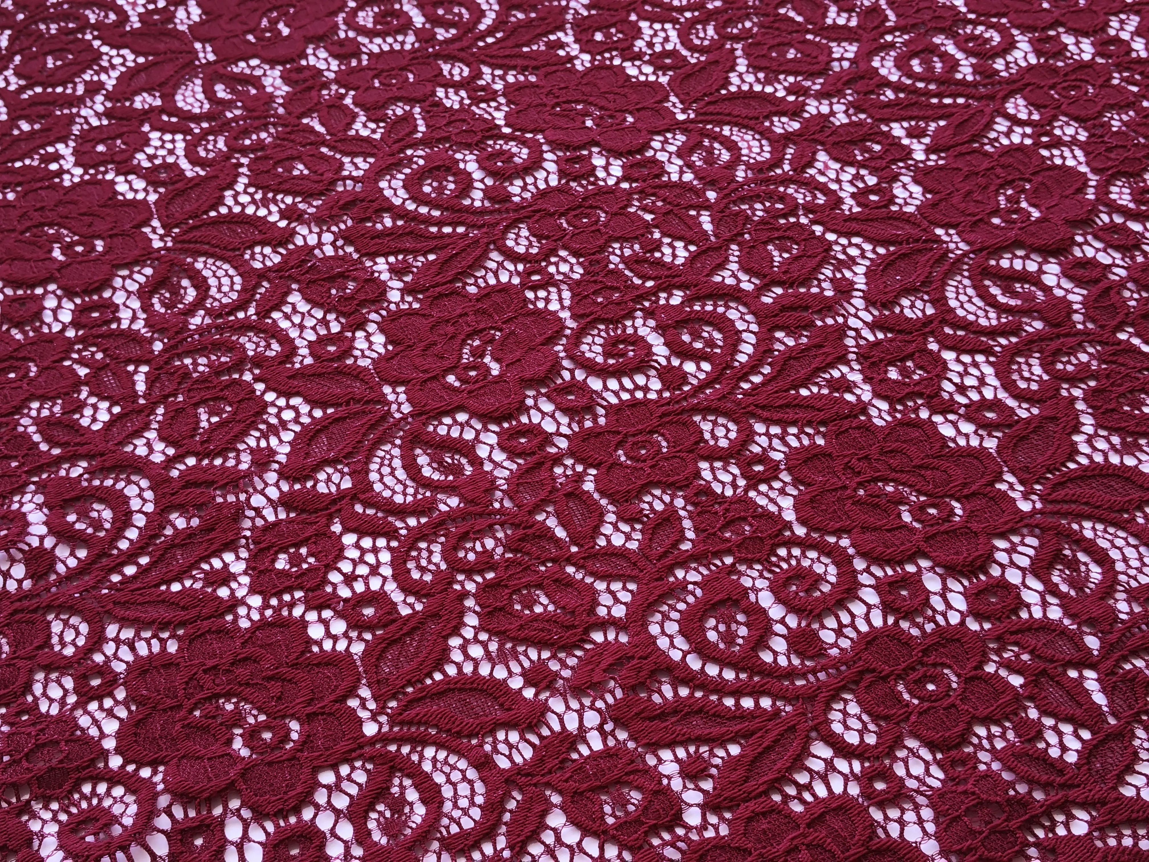 Гипюр стрейч Классика цветочная нежность, бордовый (отрез 2,2 м)