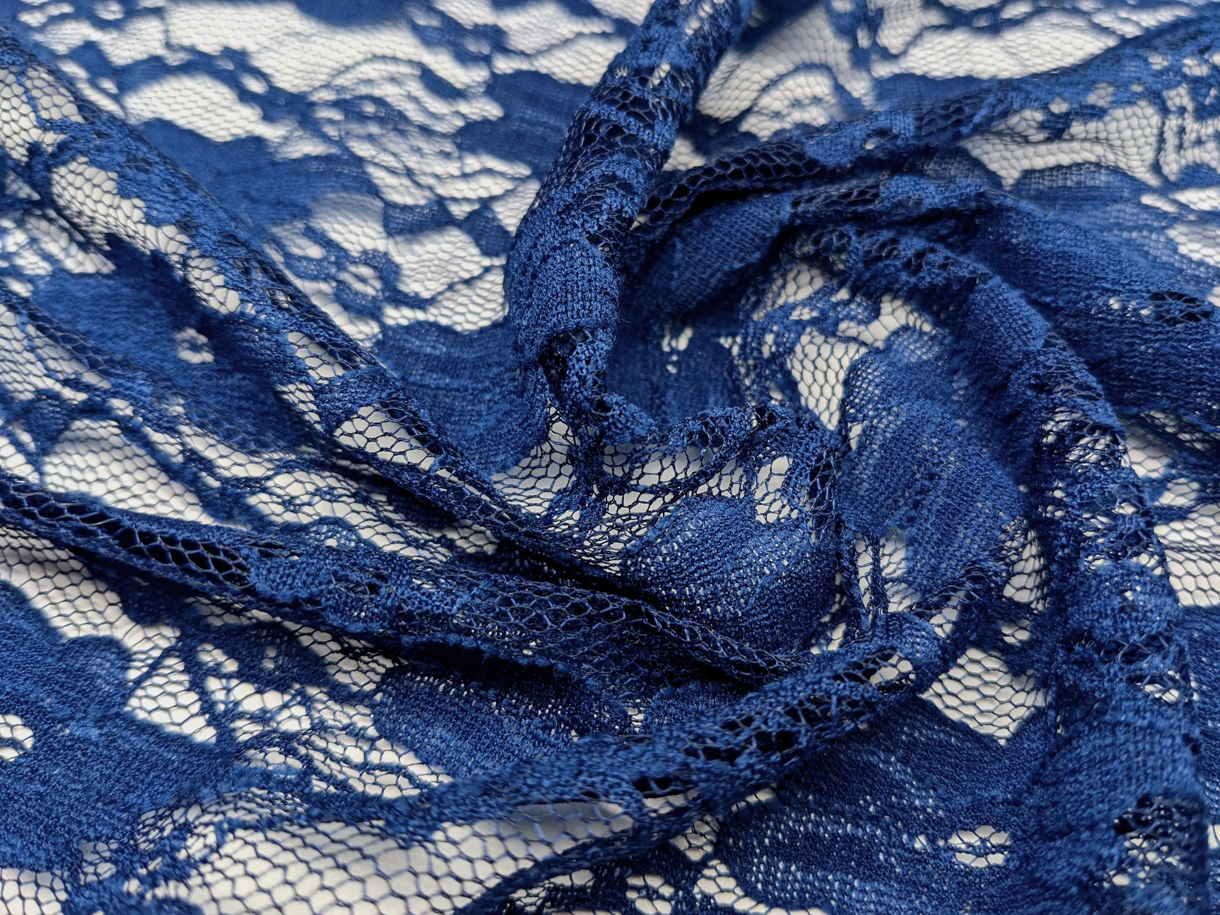 Гипюр цветочный цветочная нежность, синий (отрез 2,6 м)