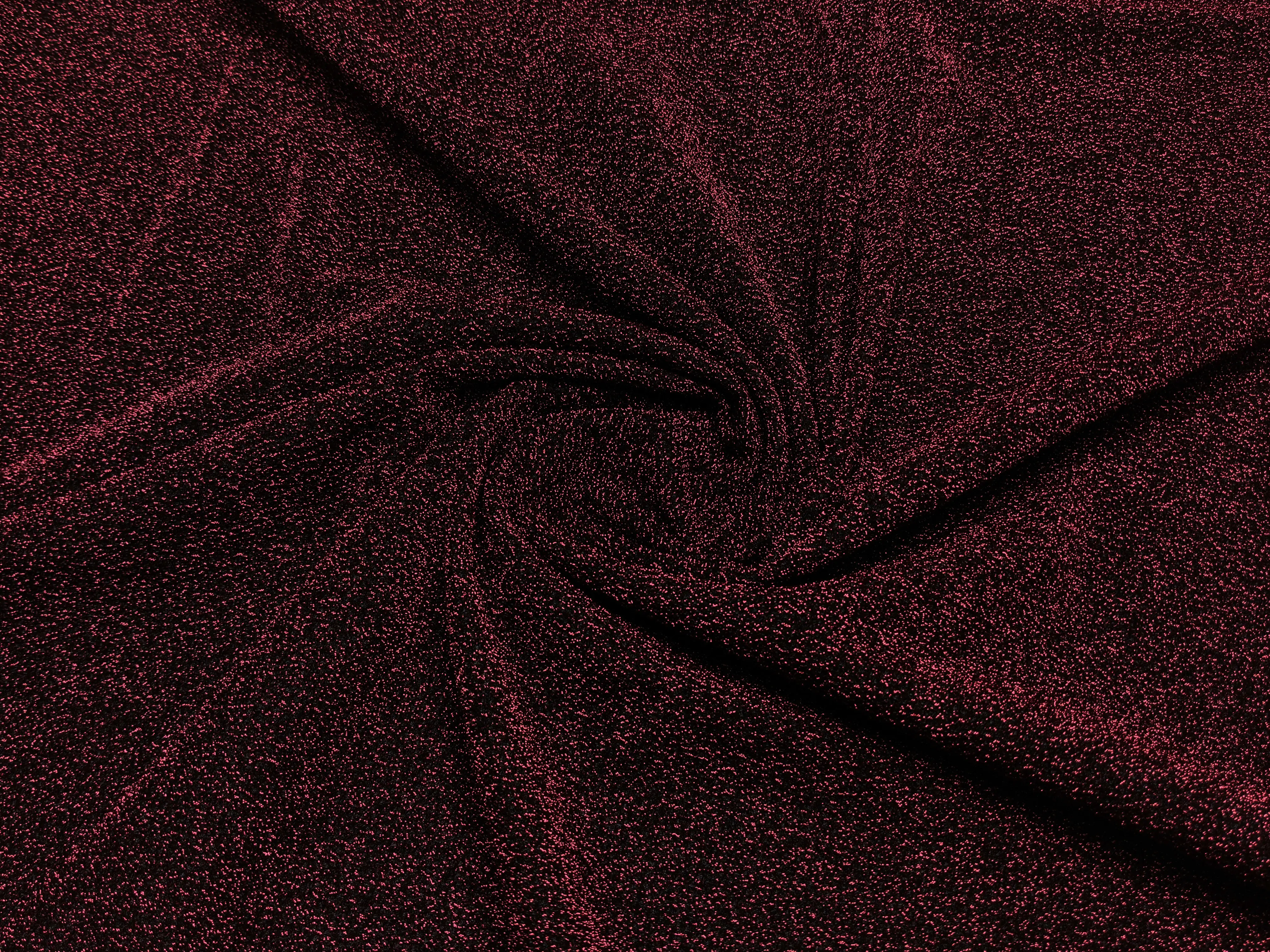 Киви люрекс - это трикотажное полотно средней плотности. Лицевая сторона имеет зернистую структуру из-за часто вплетенных люрексовых нитей, которые образуют фактурный ворс и мерцающий блеск, изнанка - гладкая. Ткань эластичная, имеет хорошую растяжимость в обе стороны, не сминается, в складки ложится мягко, непрозрачная на теле.