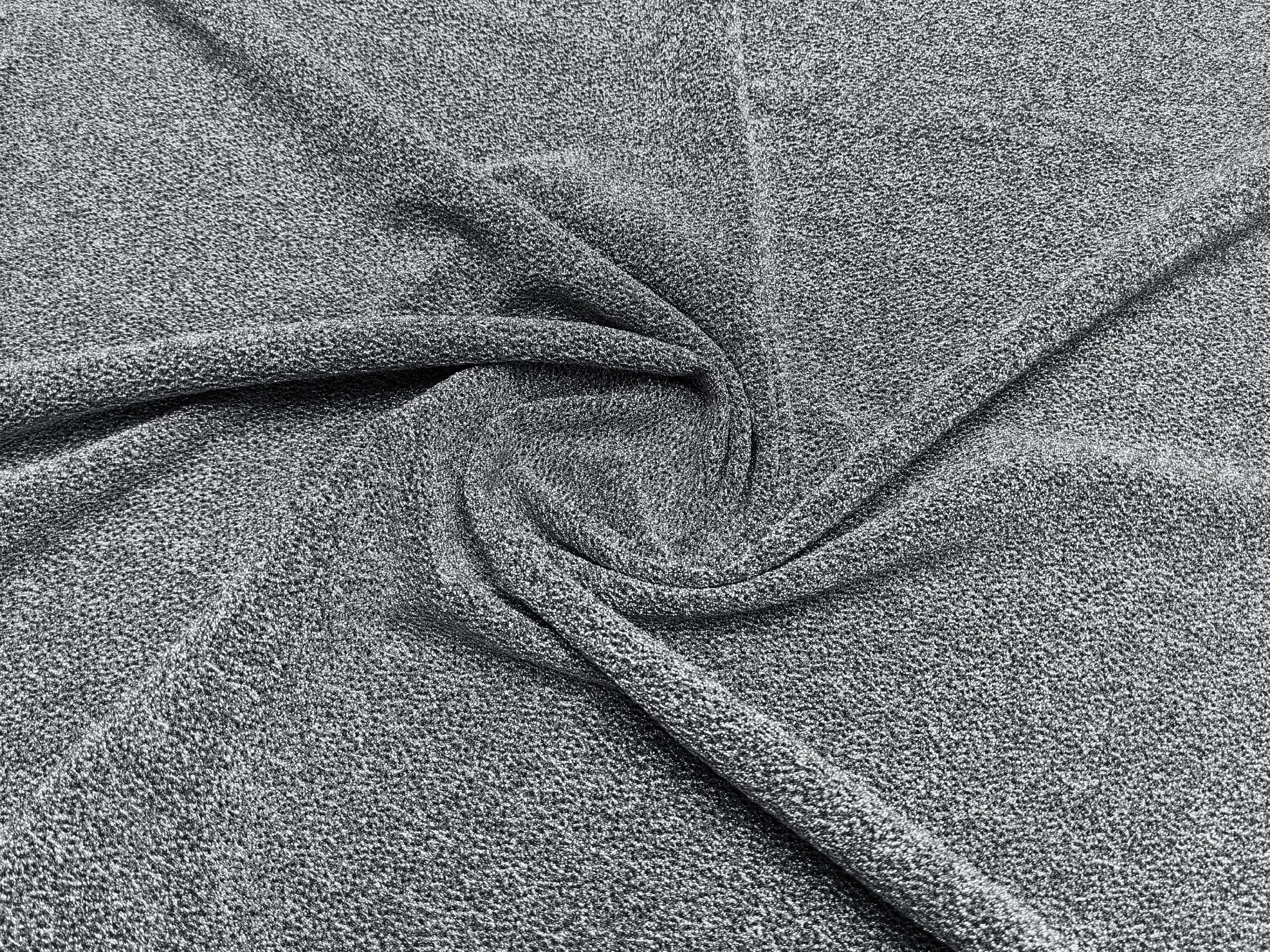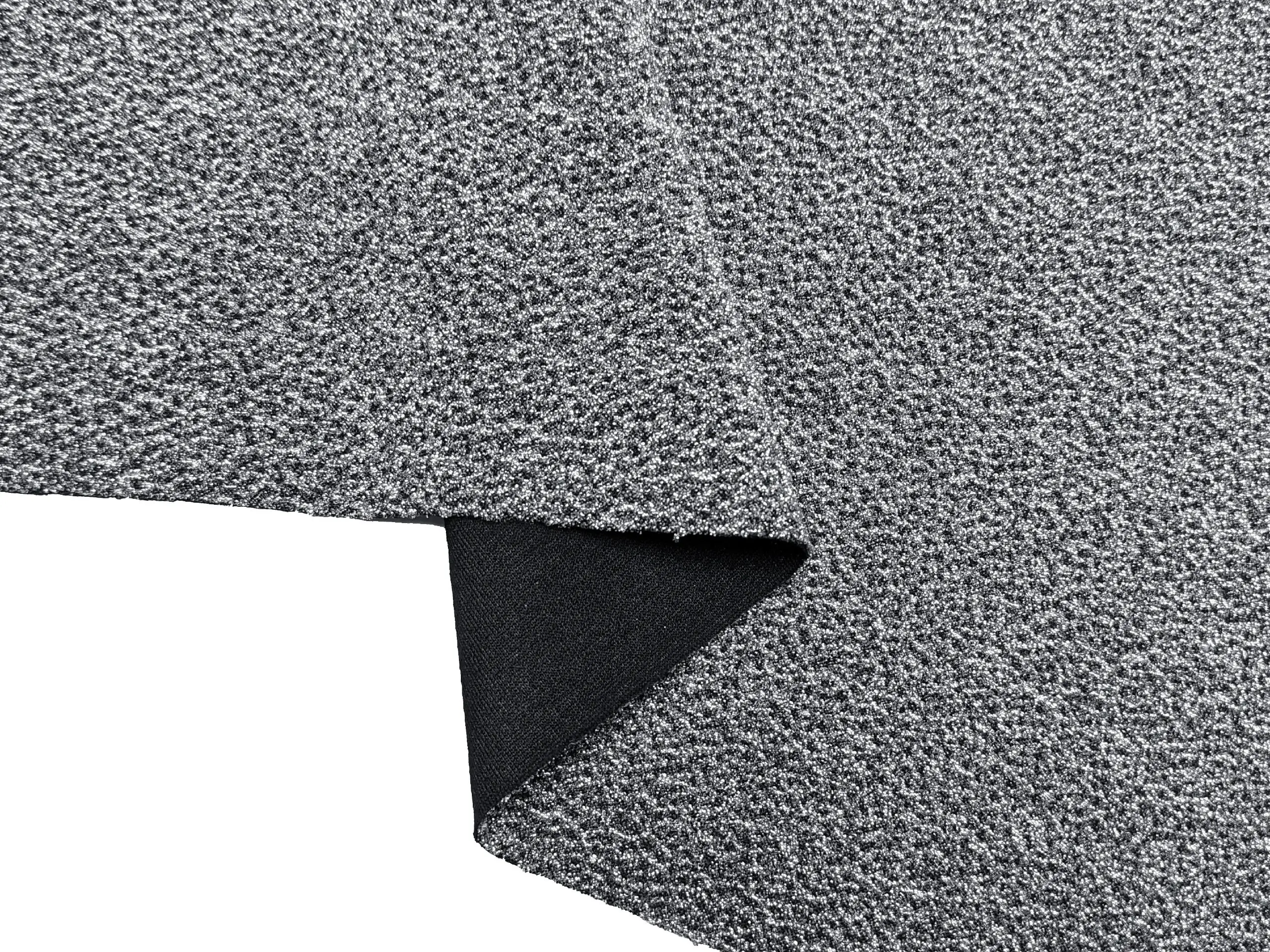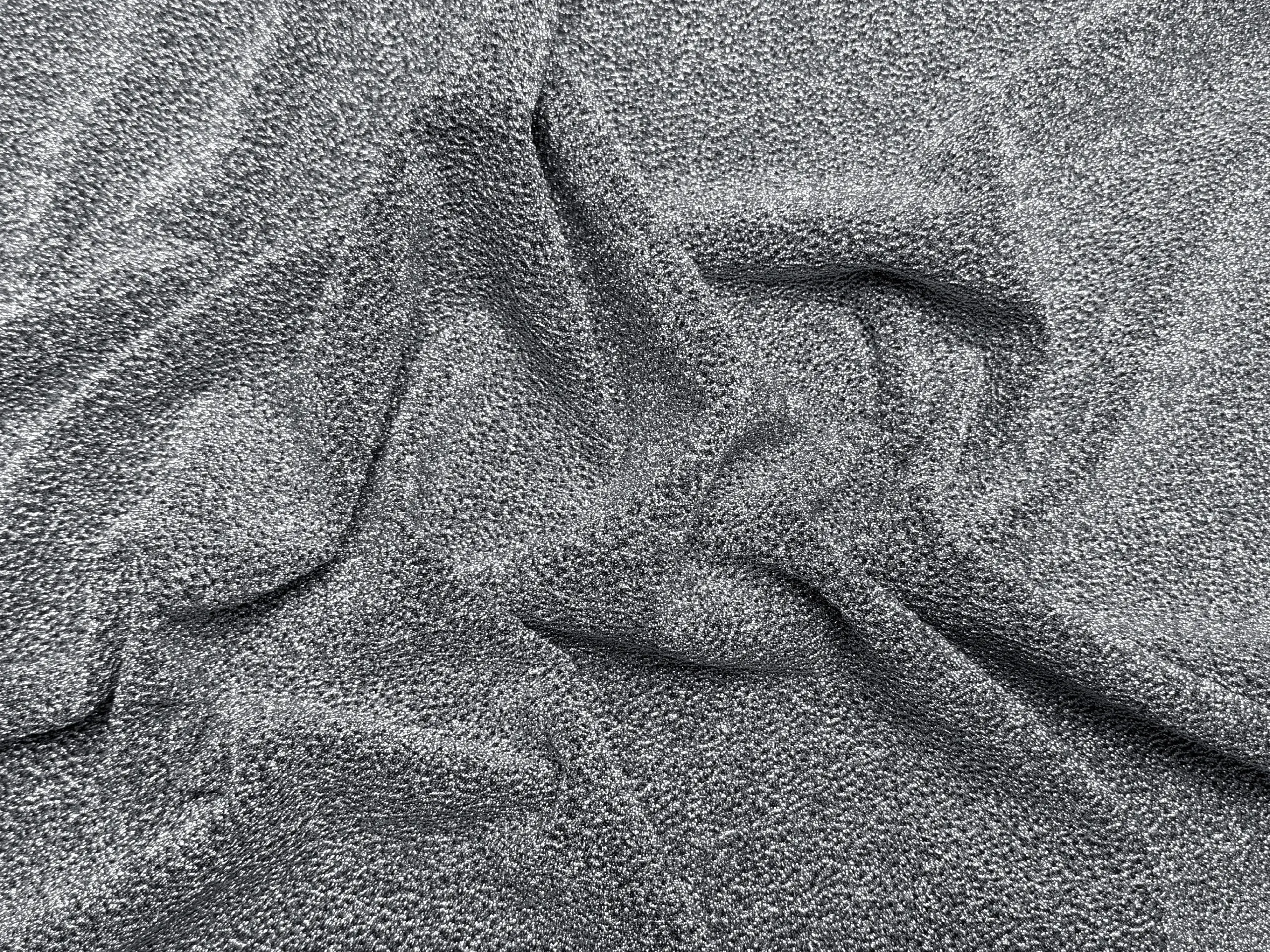 Киви люрекс - это трикотажное полотно средней плотности. Лицевая сторона имеет зернистую структуру из-за часто вплетенных люрексовых нитей, которые образуют фактурный ворс и мерцающий блеск, изнанка - гладкая. Ткань эластичная, имеет хорошую растяжимость в обе стороны, не сминается, в складки ложится мягко, непрозрачная на теле.