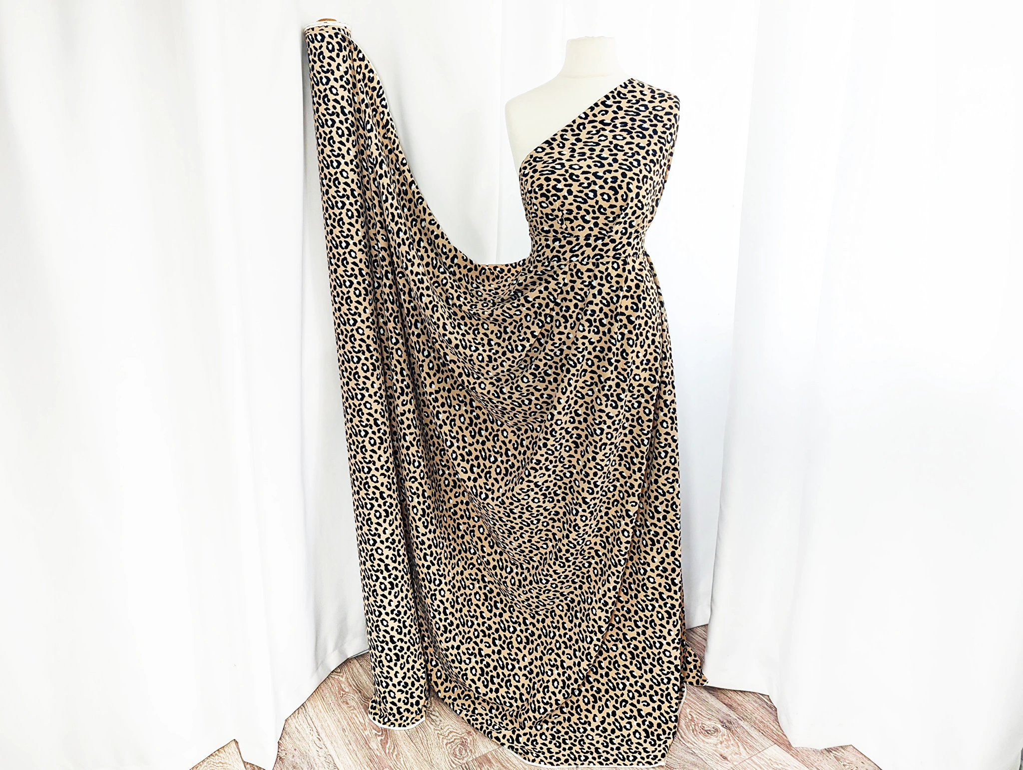 Костюмка шелковистая леопард равномерный, бежевый с черным