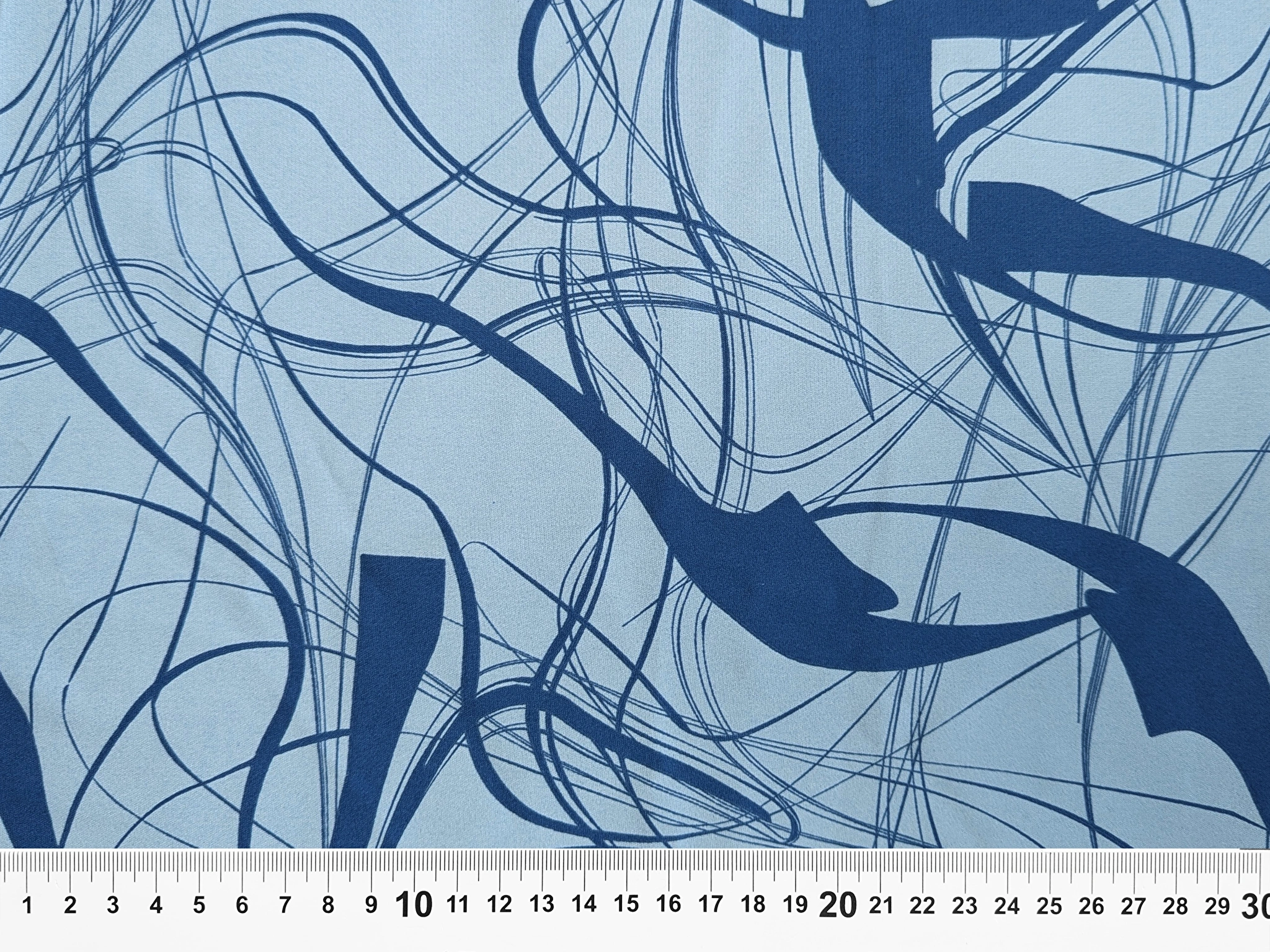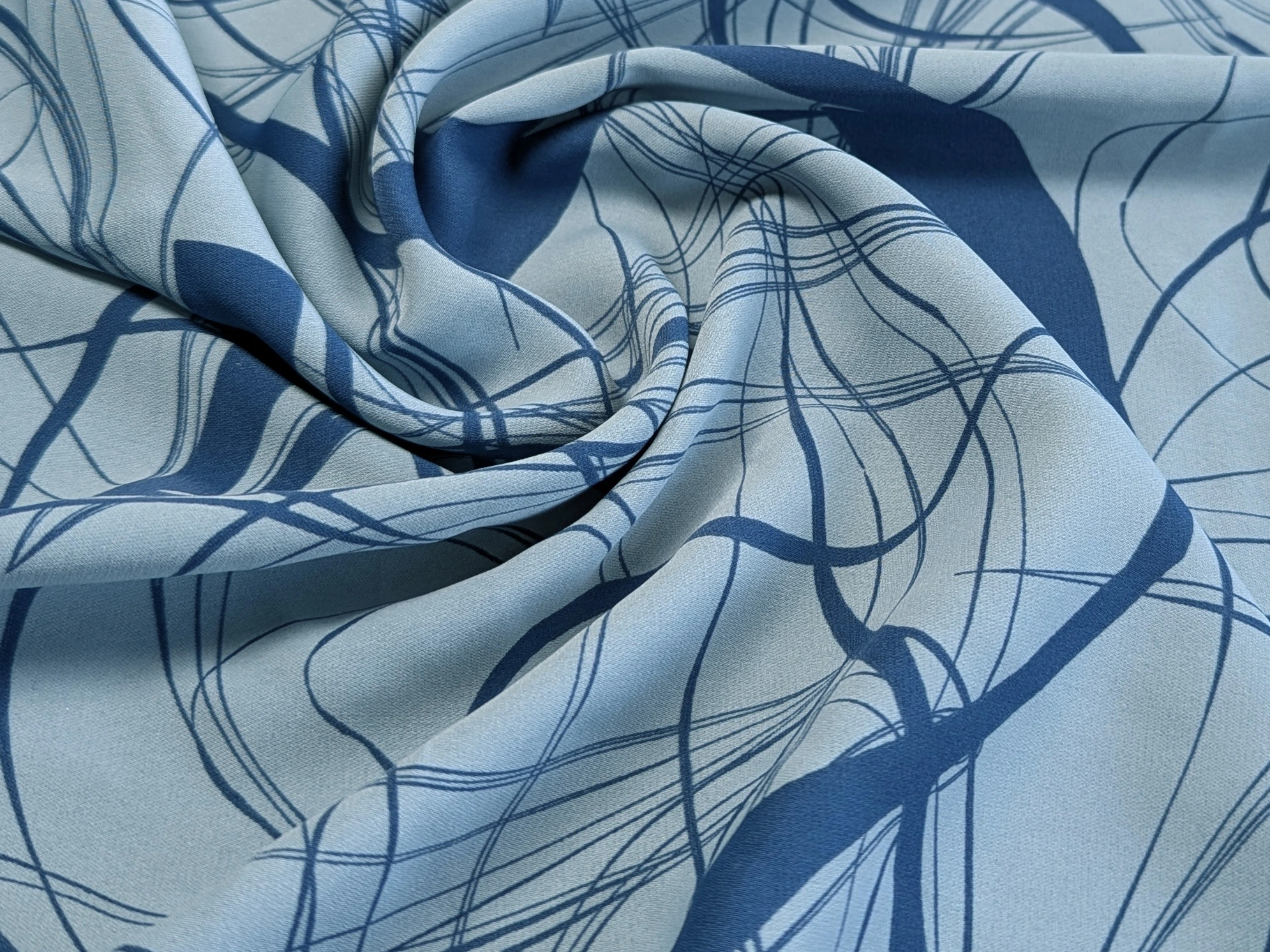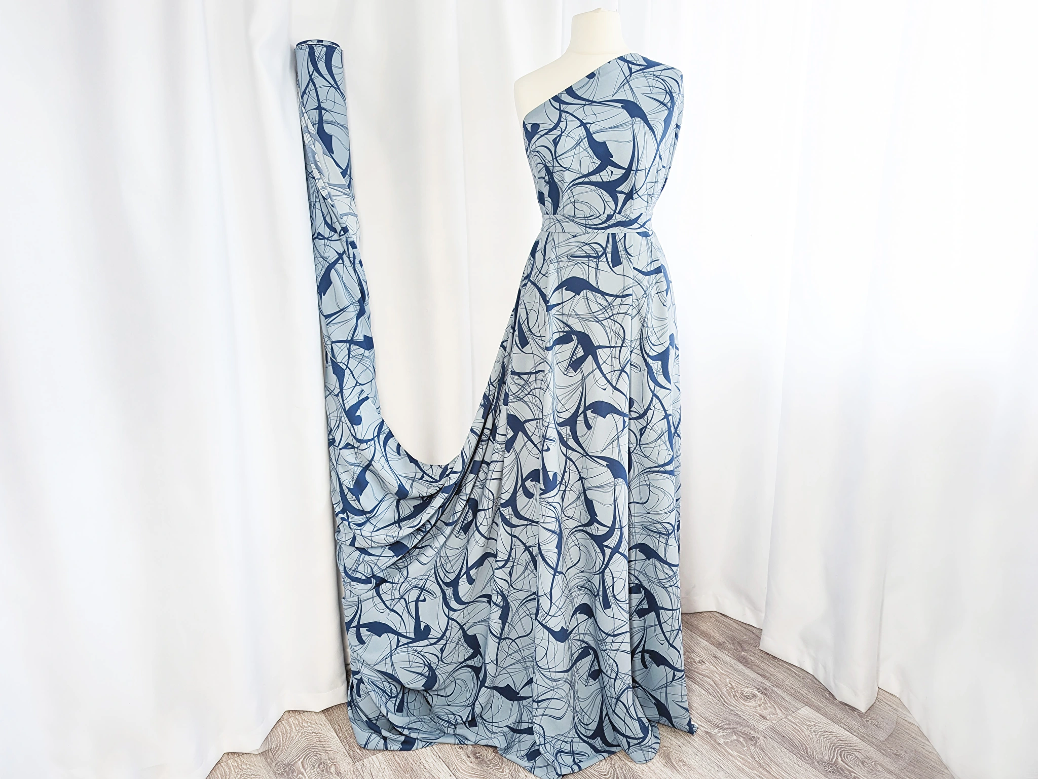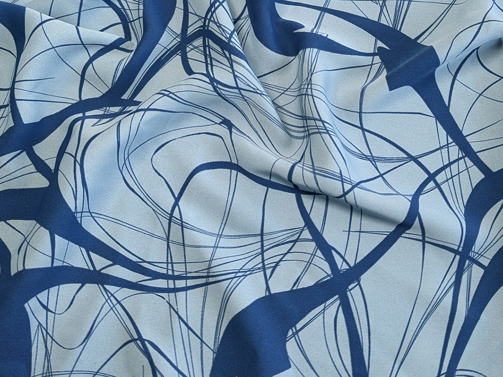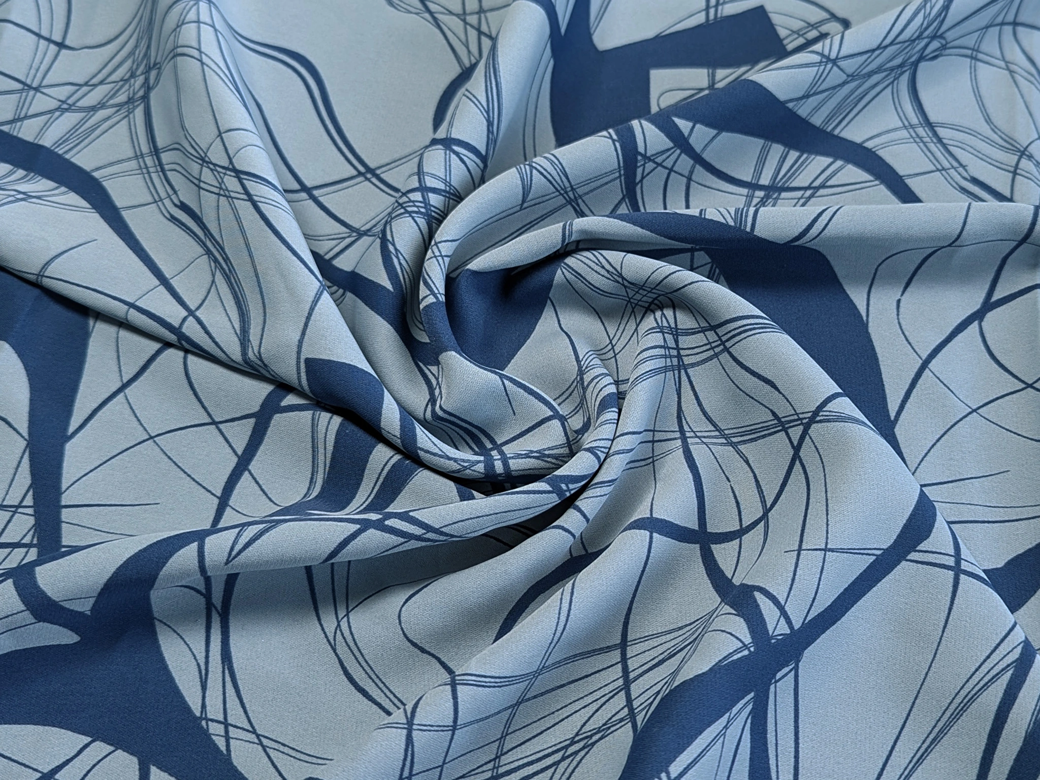 Костюмка шелковистая акварельная абстракция, голубой дымчатый