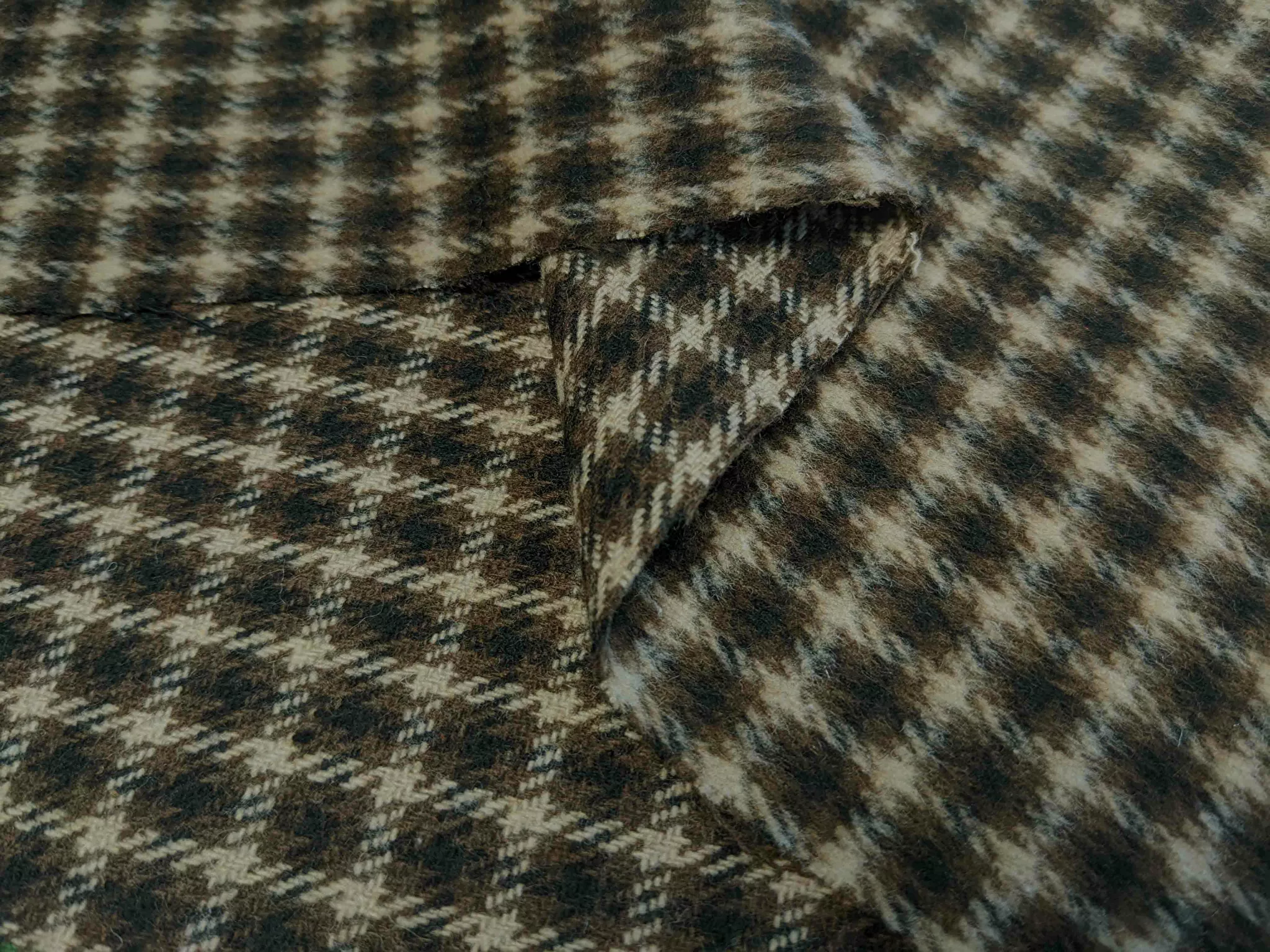 Клетка Шенон - плотное, костюмное полотно, поверхность которого покрыта мягким, нежным ворсом. Ткань комфортная, не колкая, мягкая и приятная на ощупь. Материал не тянется, хорошо драпируется, слегка сминается.
