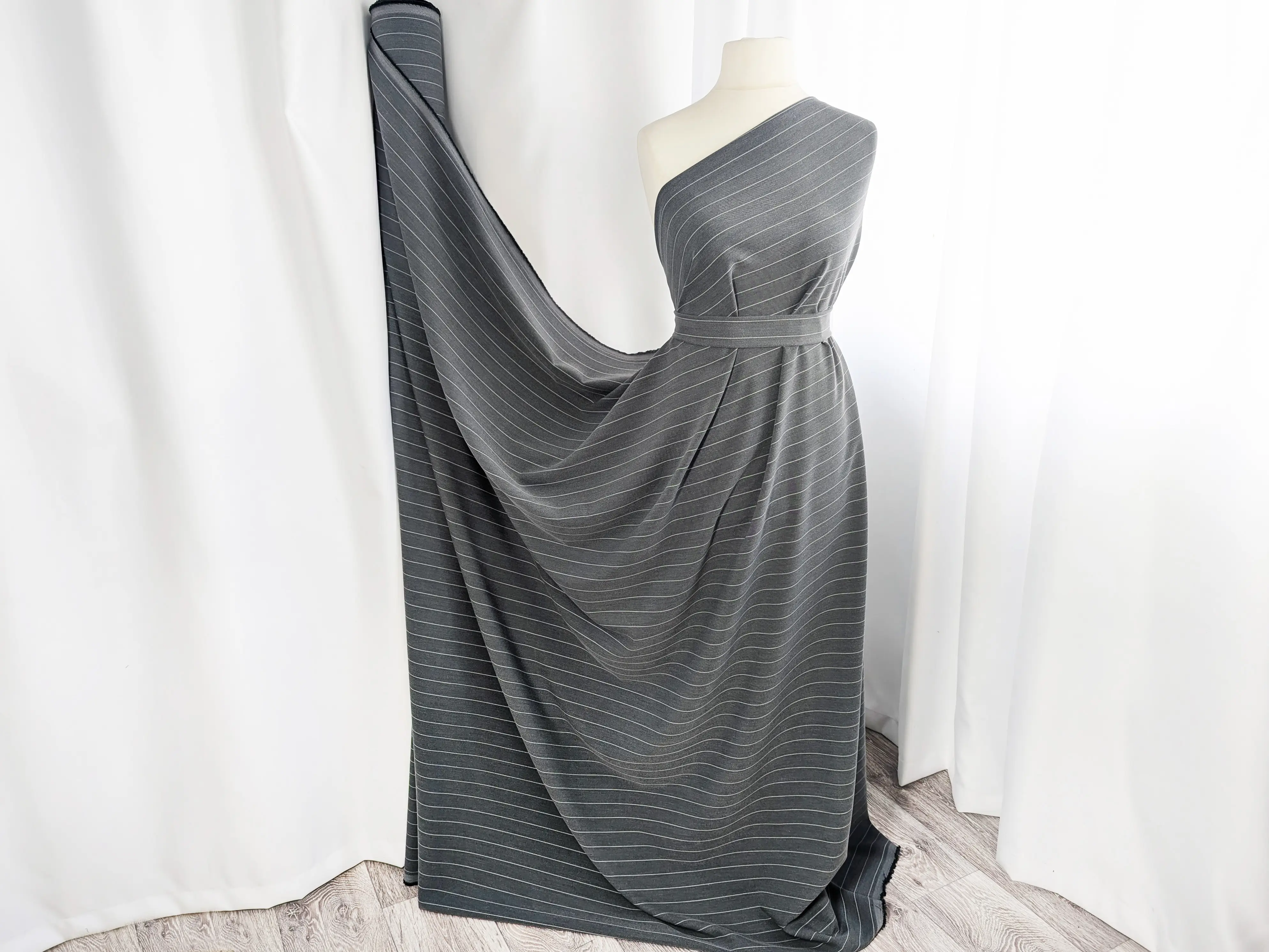 Ткань непрозрачная, слегка эластичная вдоль полотна, отлично драпируется и обладает приятной текстурой.