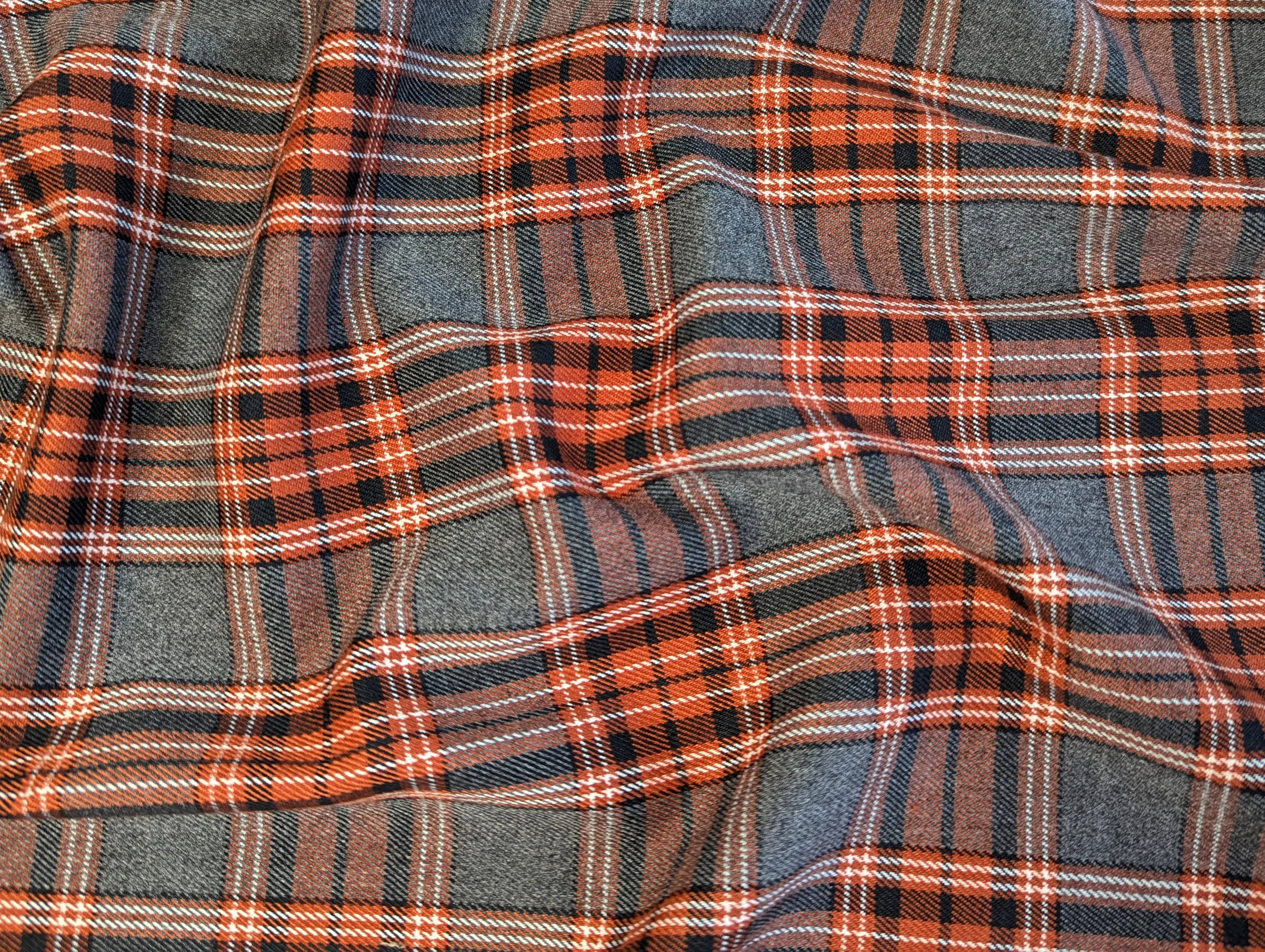 Клетка Шотландия - костюмная ткань средней плотности. На ощупь мягкая, имеет слегка шершавую фактуру и мелкий диагональный рубчик. В составе материала присутствуют натуральные и синтетические волокна. Костюмный тиар имеет легкую эластичность по ширине полотна, не сминается, хорошо драпируется.