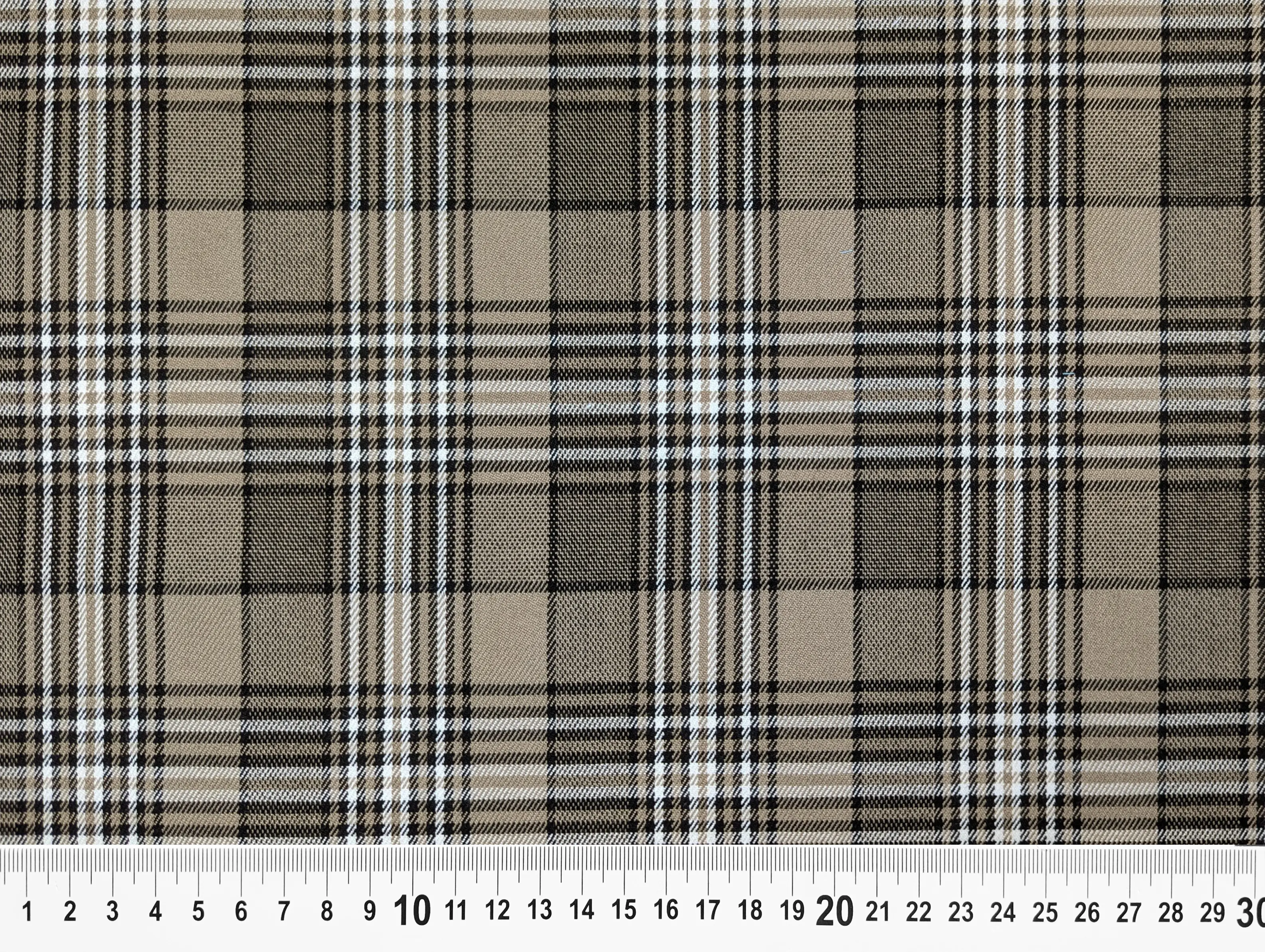 Клетка Шотландия - костюмная ткань средней плотности. На ощупь мягкая, имеет слегка шершавую фактуру и мелкий диагональный рубчик. В составе материала присутствуют натуральные и синтетические волокна. Костюмный тиар имеет легкую эластичность по ширине полотна, не сминается, хорошо драпируется.