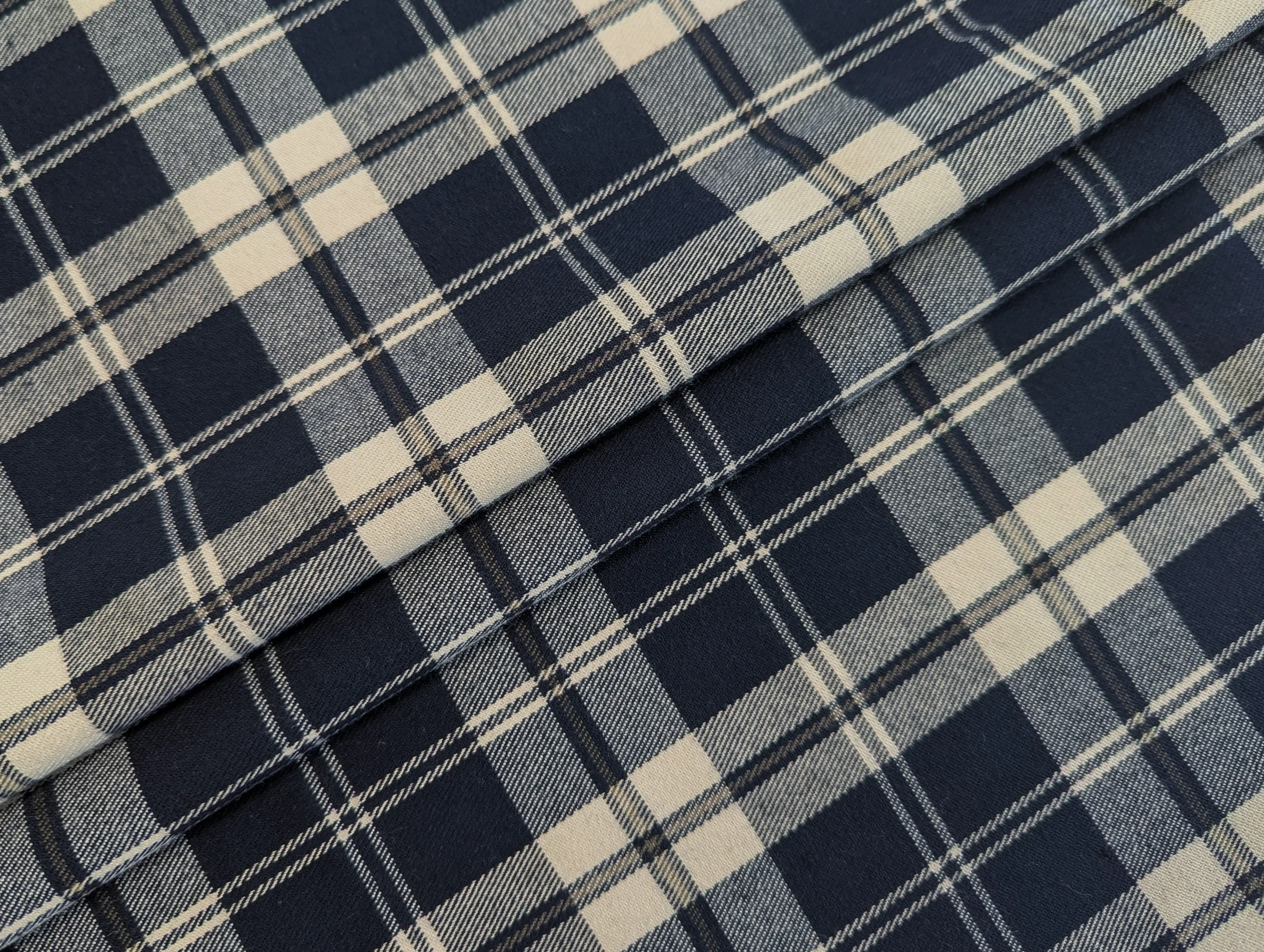 Клетка Шотландия - костюмная ткань средней плотности. На ощупь мягкая, имеет слегка шершавую фактуру и мелкий диагональный рубчик. В составе материала присутствуют натуральные и синтетические волокна. Костюмный тиар имеет легкую эластичность по ширине полотна, не сминается, хорошо драпируется.
