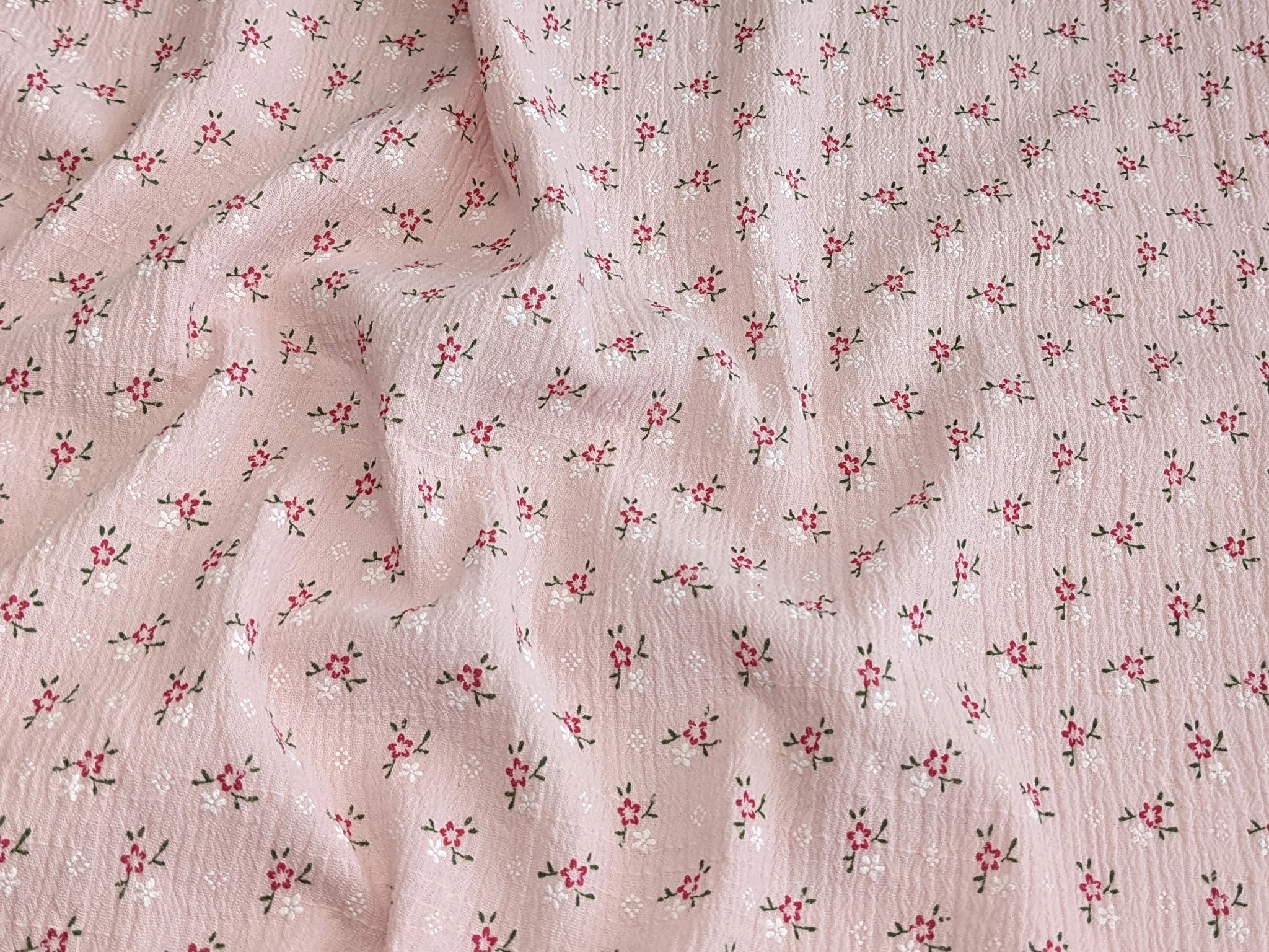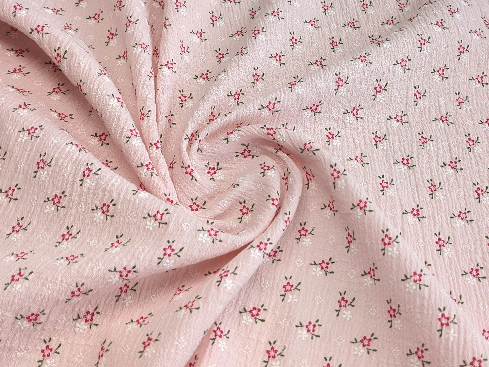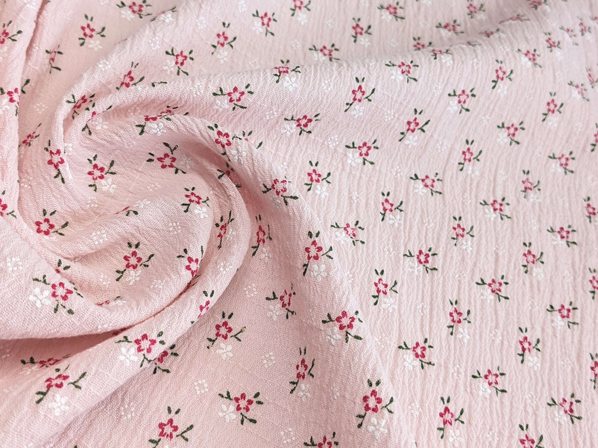 Коттон кринкл цветочки, светло-розовый