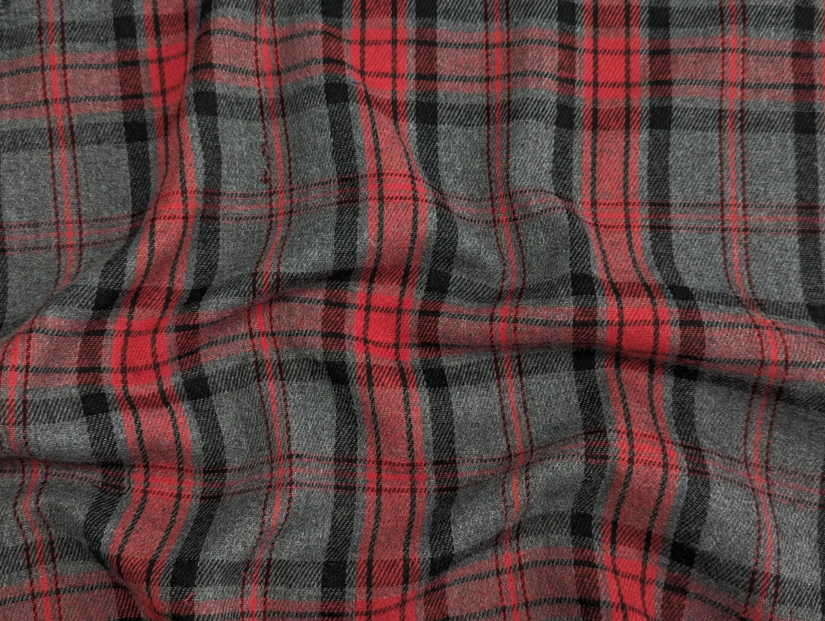 Коттон рубашечный клетка 105 мм, красный на сером