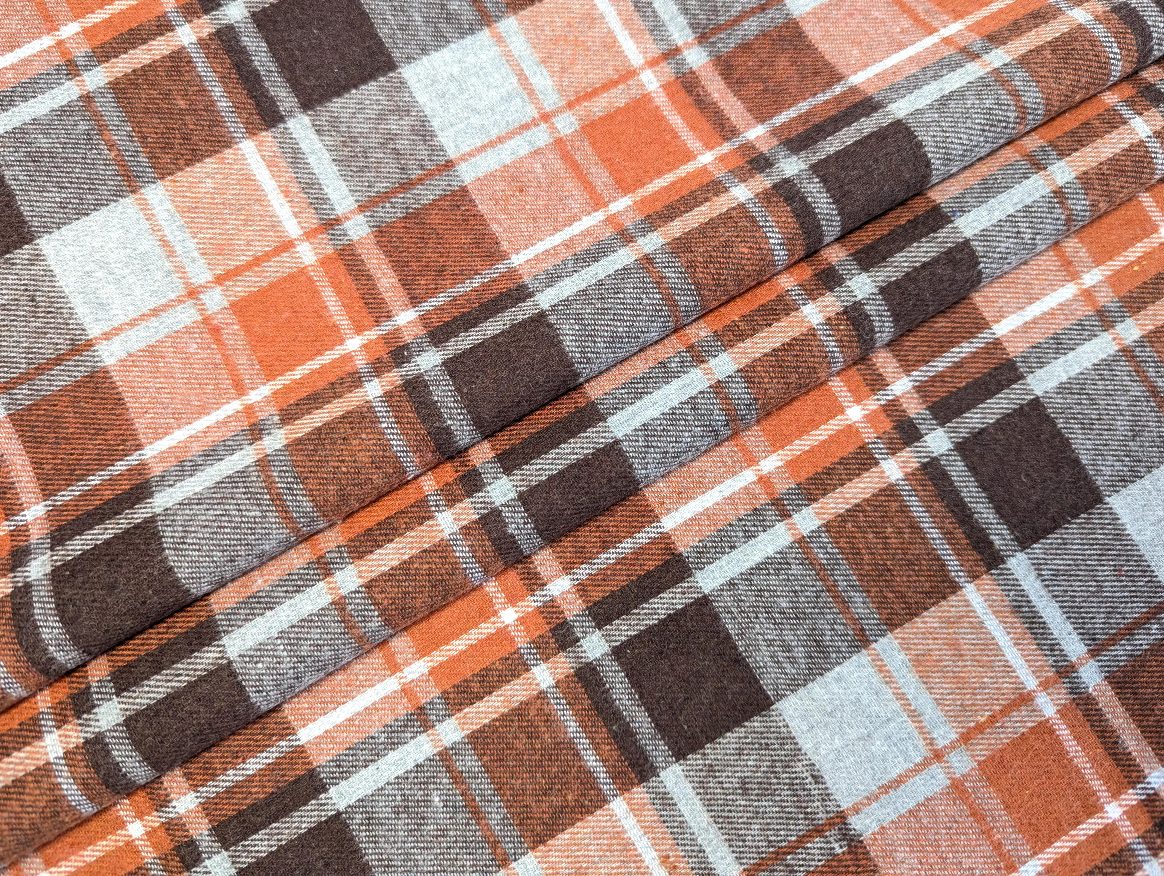 Коттон рубашечный клетка 110 мм, коричневый с серым