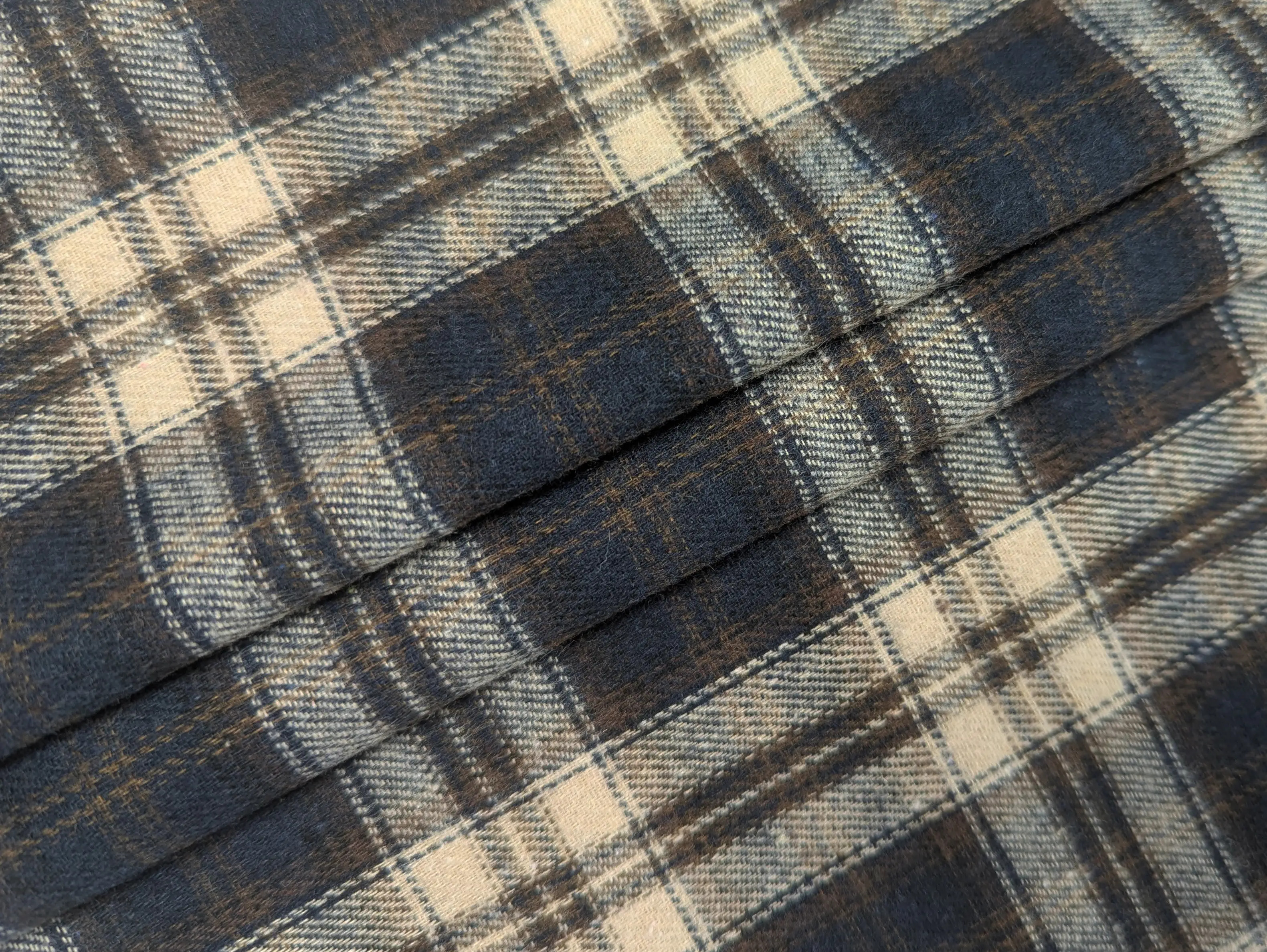 Коттон рубашечный клетка 71 мм, темно-синий с бежевым