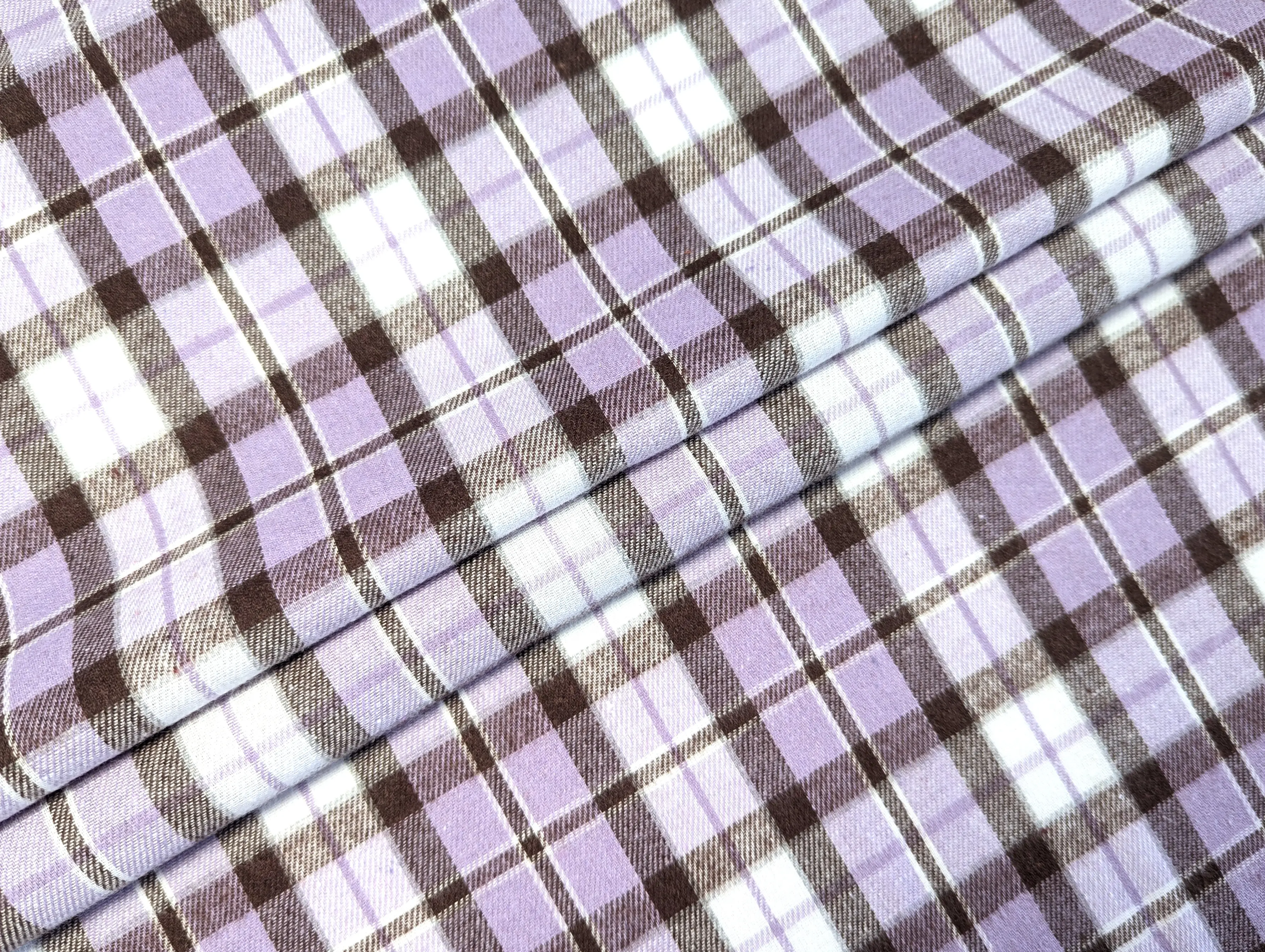 Коттон рубашечный клетка 95 мм, коричневый с сиреневым
