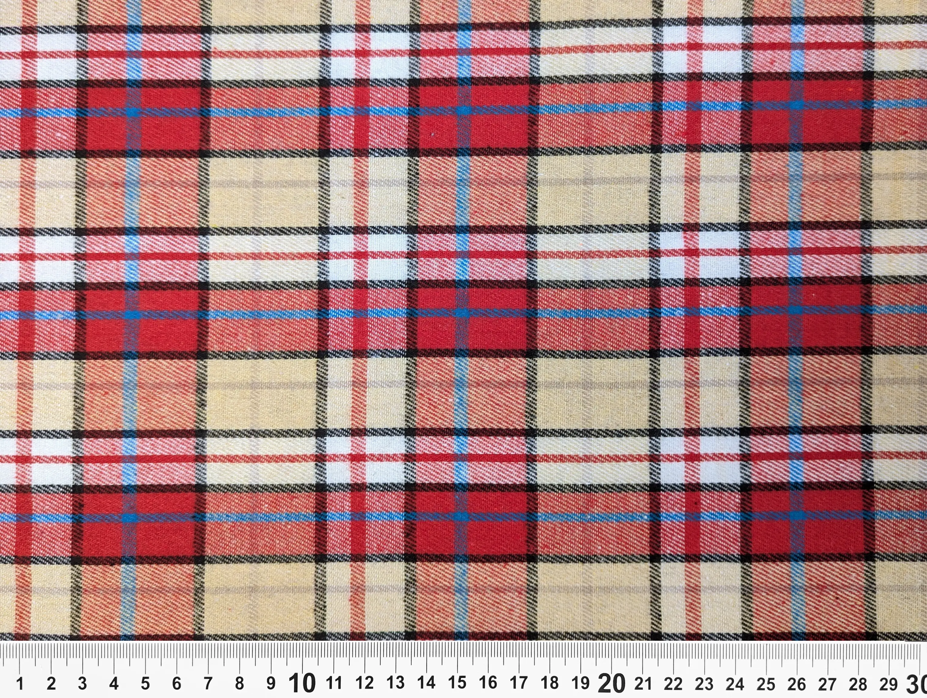 Коттон рубашечный клетка, топленое молоко с красным