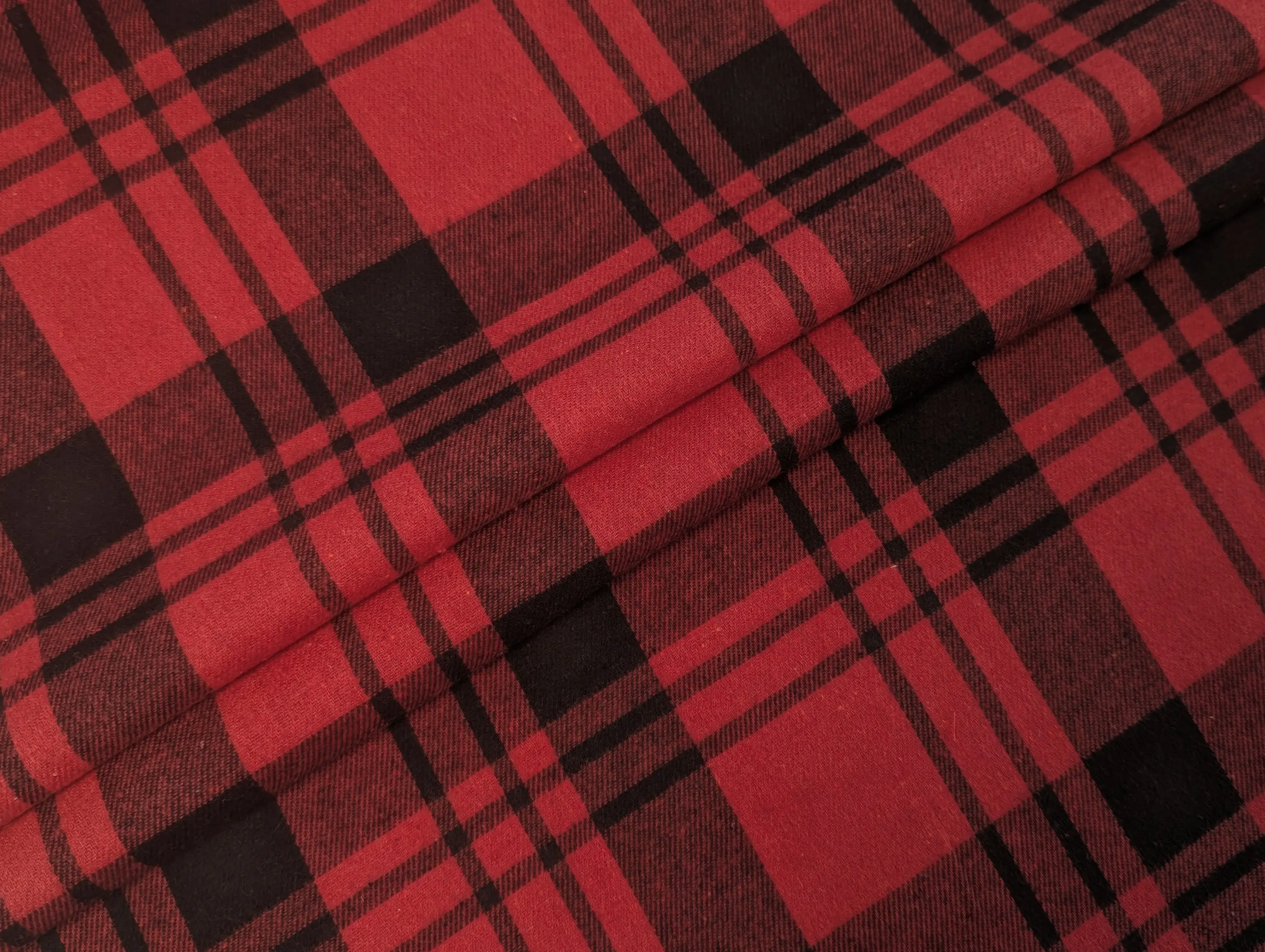 Коттон рубашечный клетка 95 мм, черный на красном (отрез 2 м)