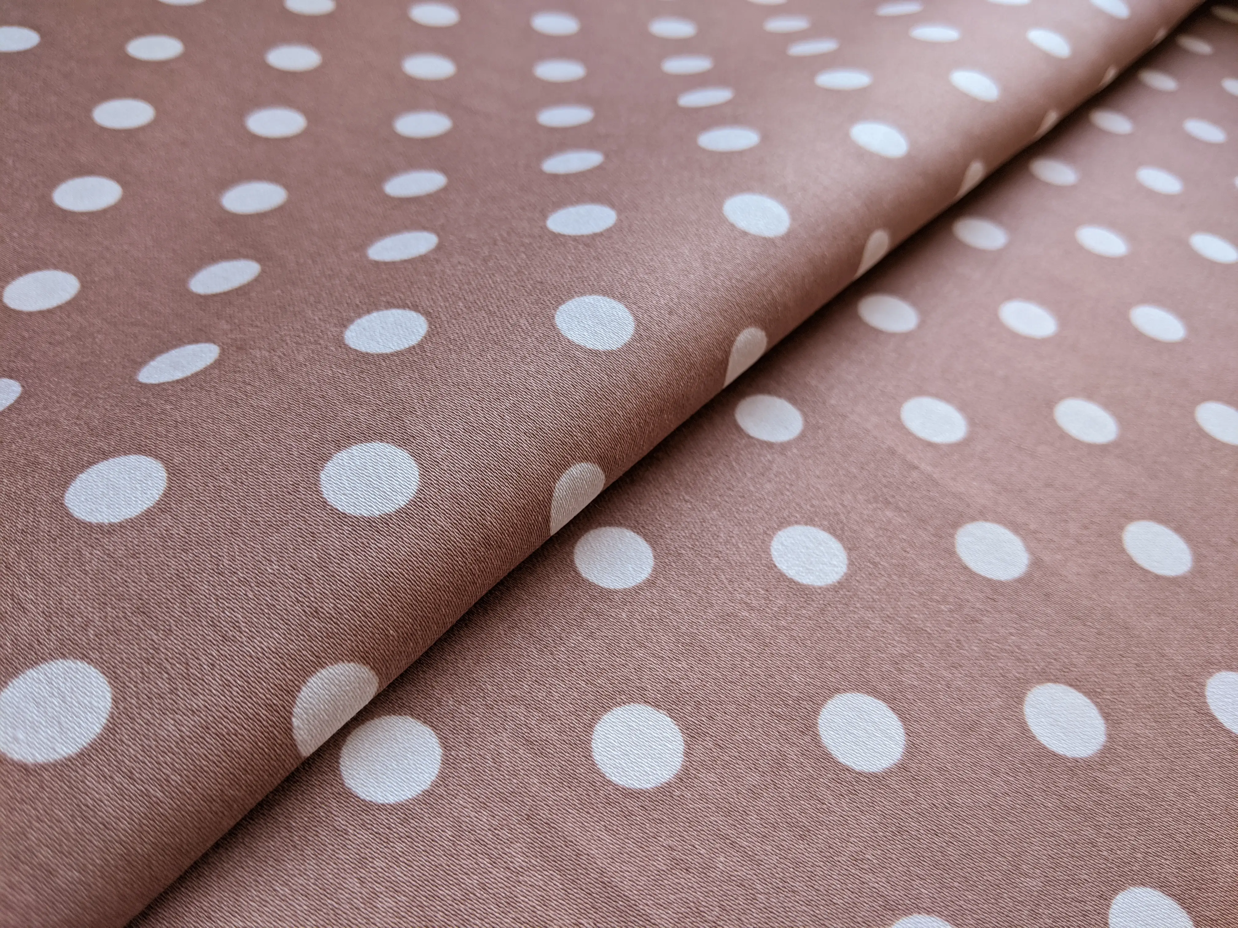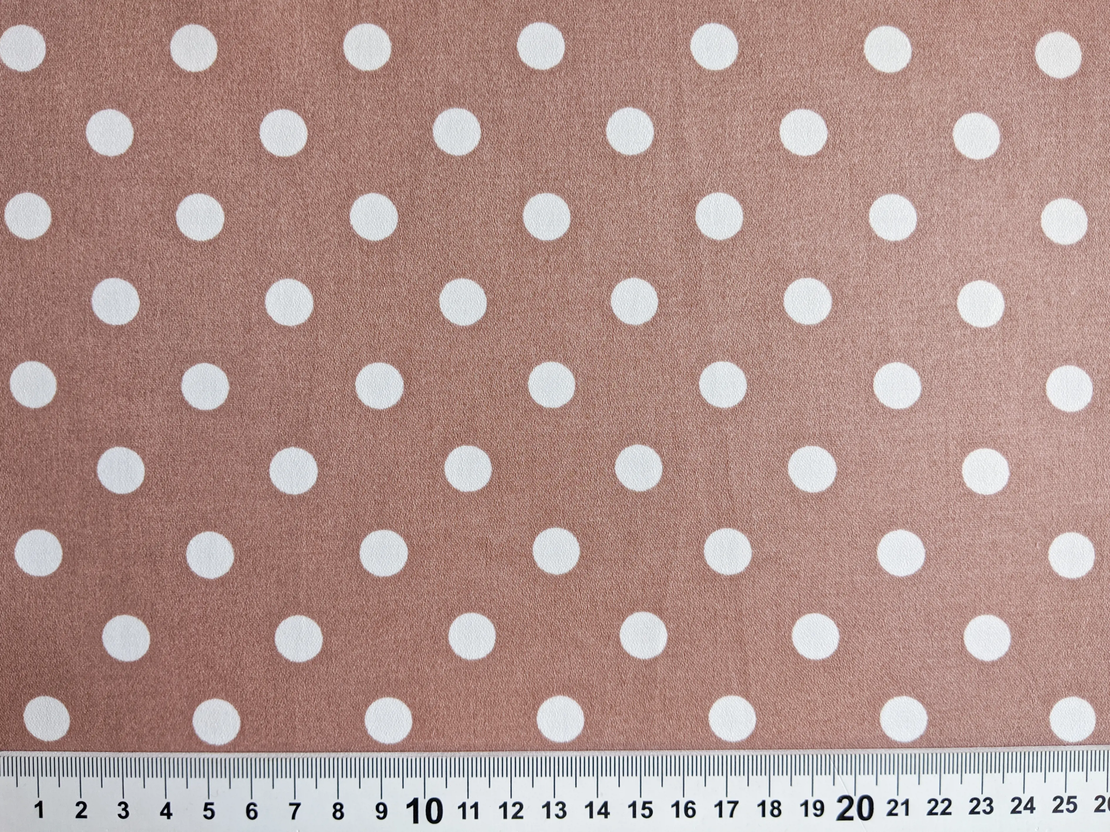 Коттон сатин горох 10 мм, белый на бежевом (отрез 1,2 м)