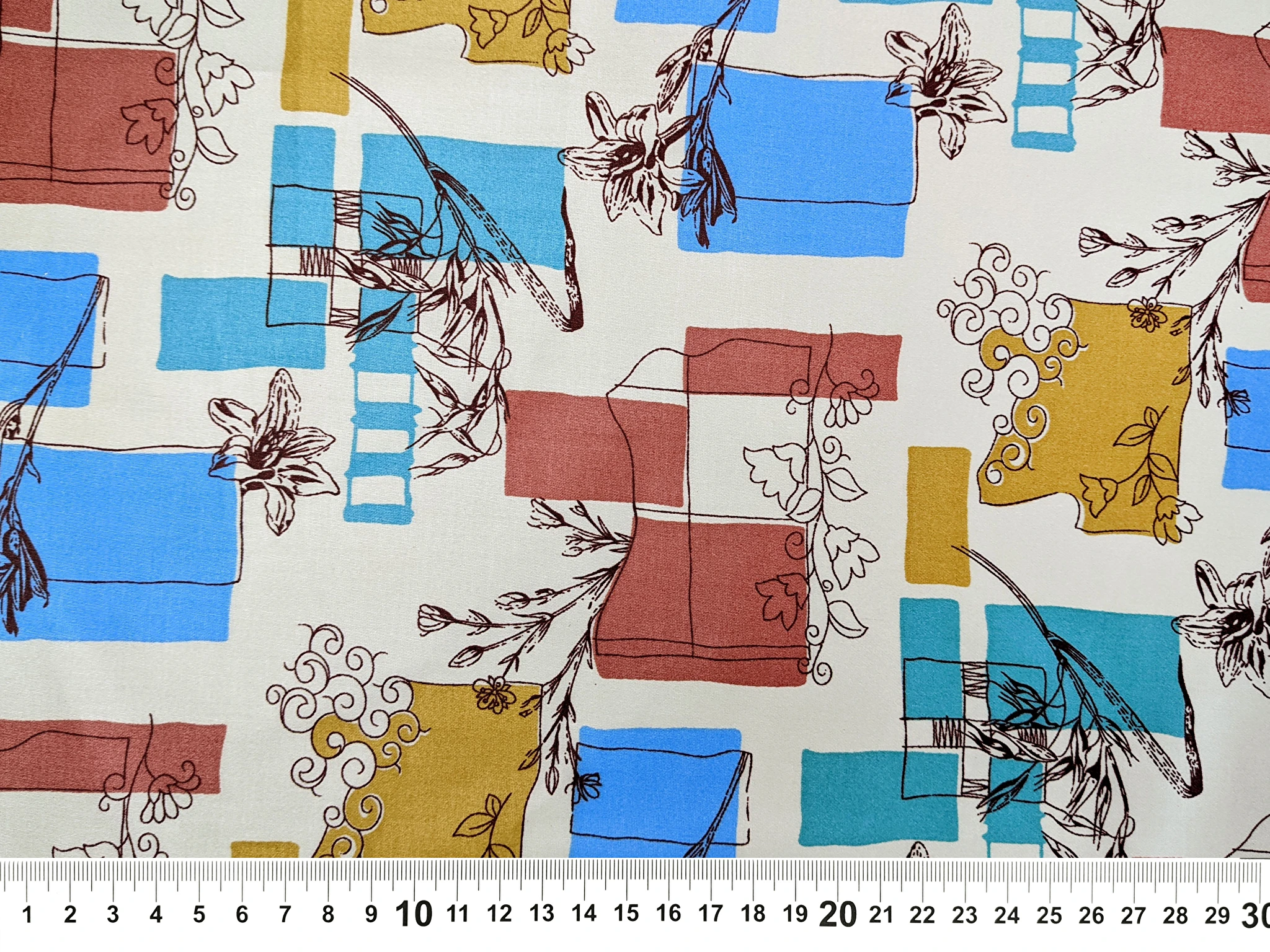 Коттон сатин принт микс орнаментов, ванильный