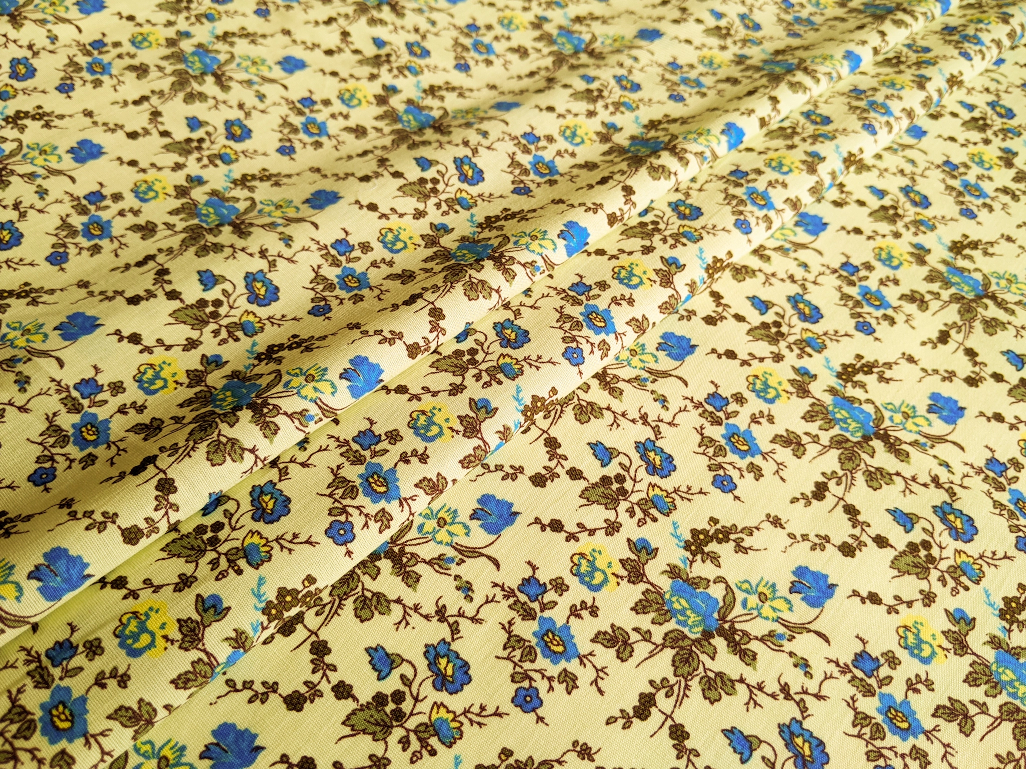 Коттон стрейчевый рубашечный мелкие цветочки, желтый (отрез 1,3 м) (с1501, 1711116, д4 цв3)