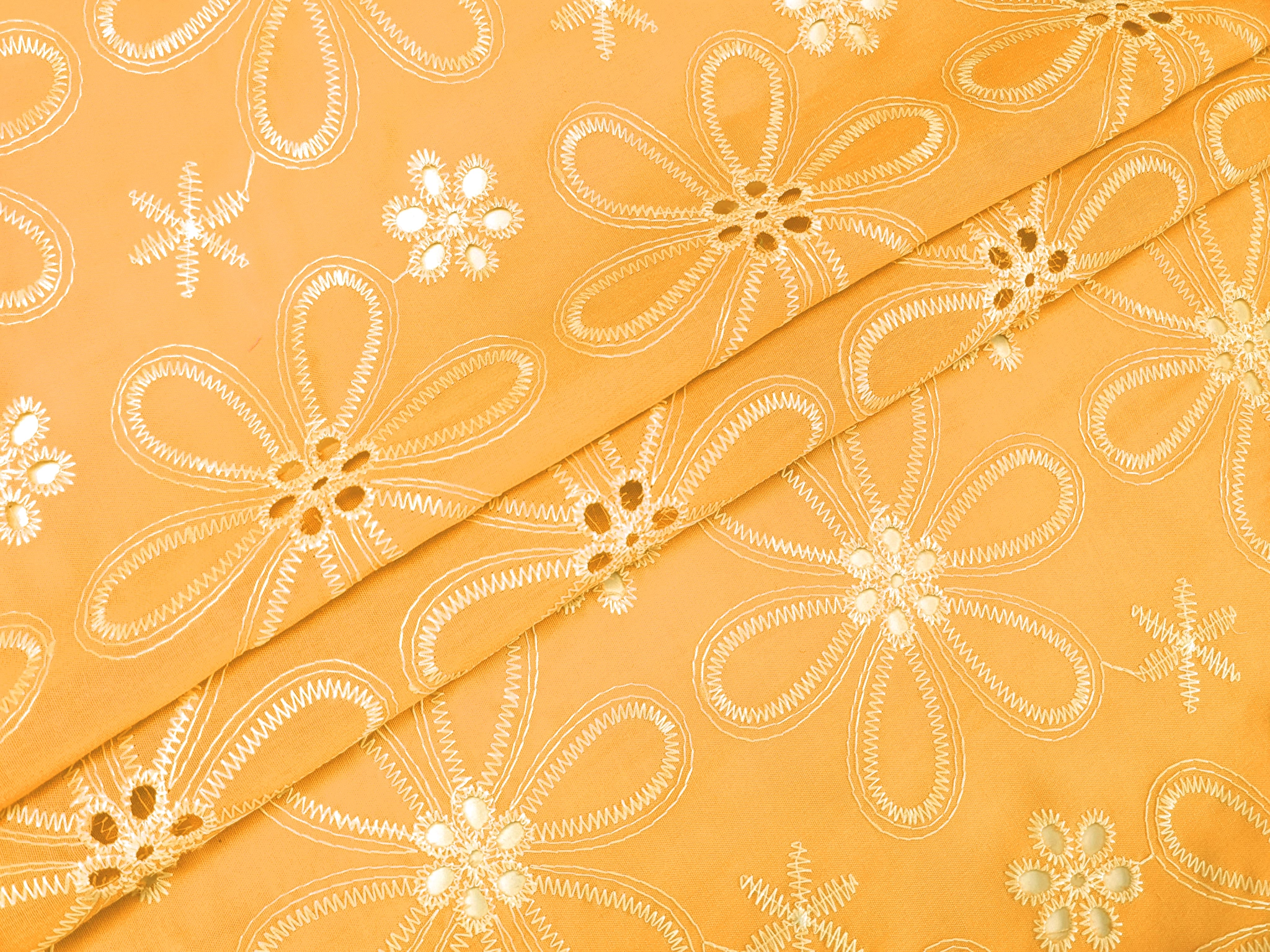 Коттон вышивка крупные цветы, желтый