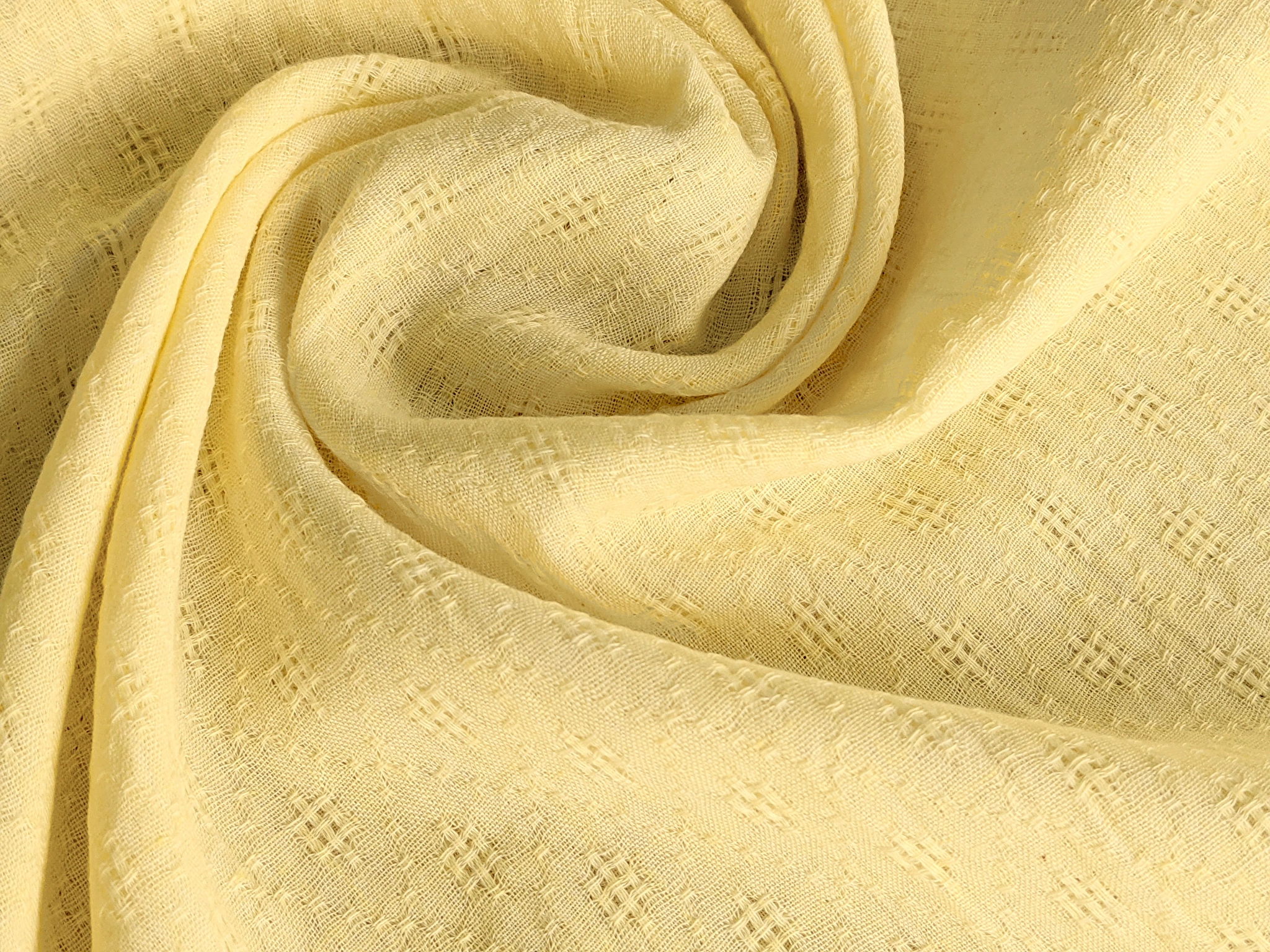 Ткань коттон жаккард - легкая и приятная на ощупь, идеальна для пошива одежды для жаркого лета. Ткань воздушная, приятная к телу, прекрасно поглощает влагу, позволяет коже дышать. Полотно не тянется, хорошо драпируется, слегка просвечивает.