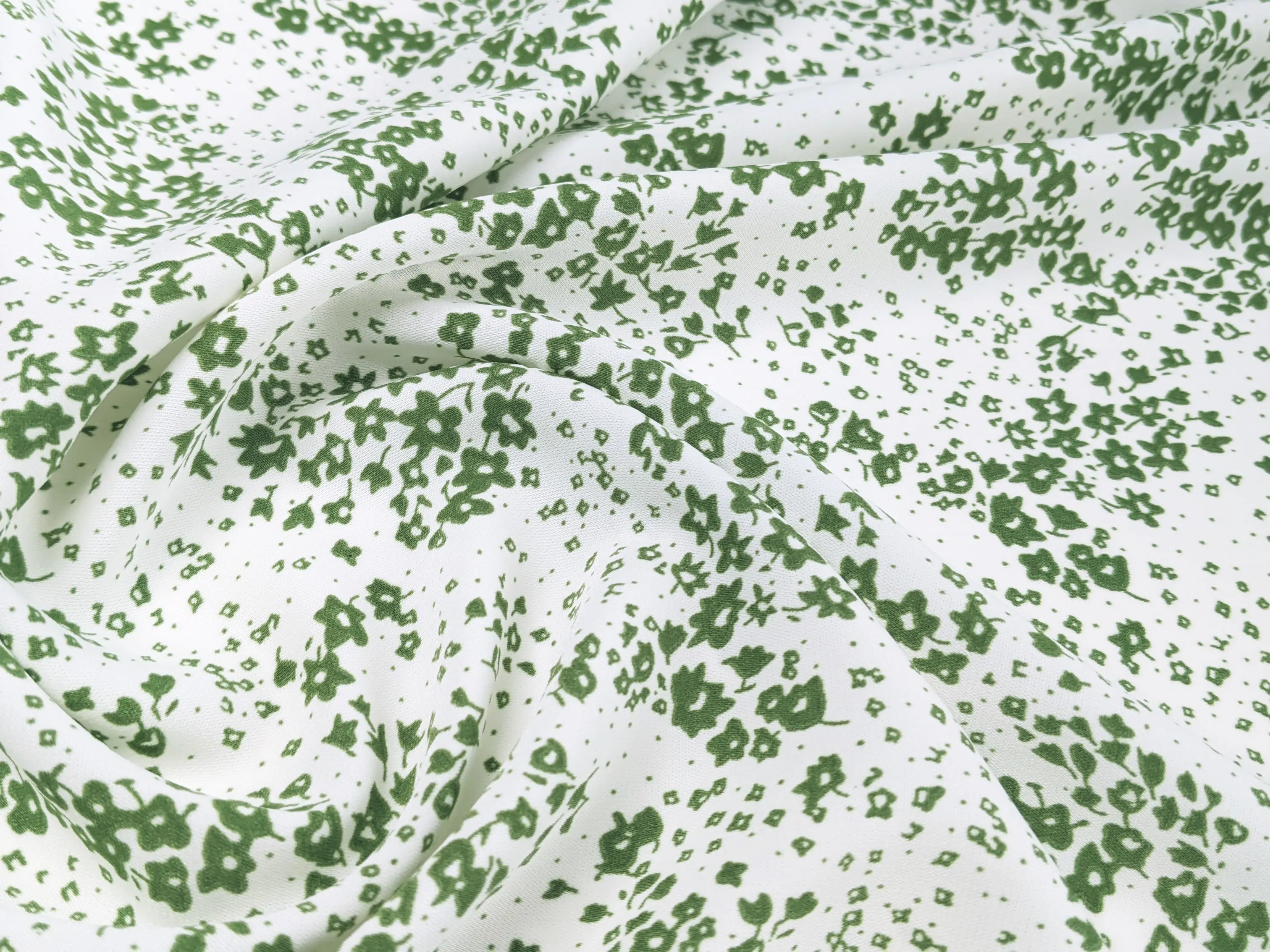 Креп шелк мелкий цветочек, молочный (отрез 2,7 м)