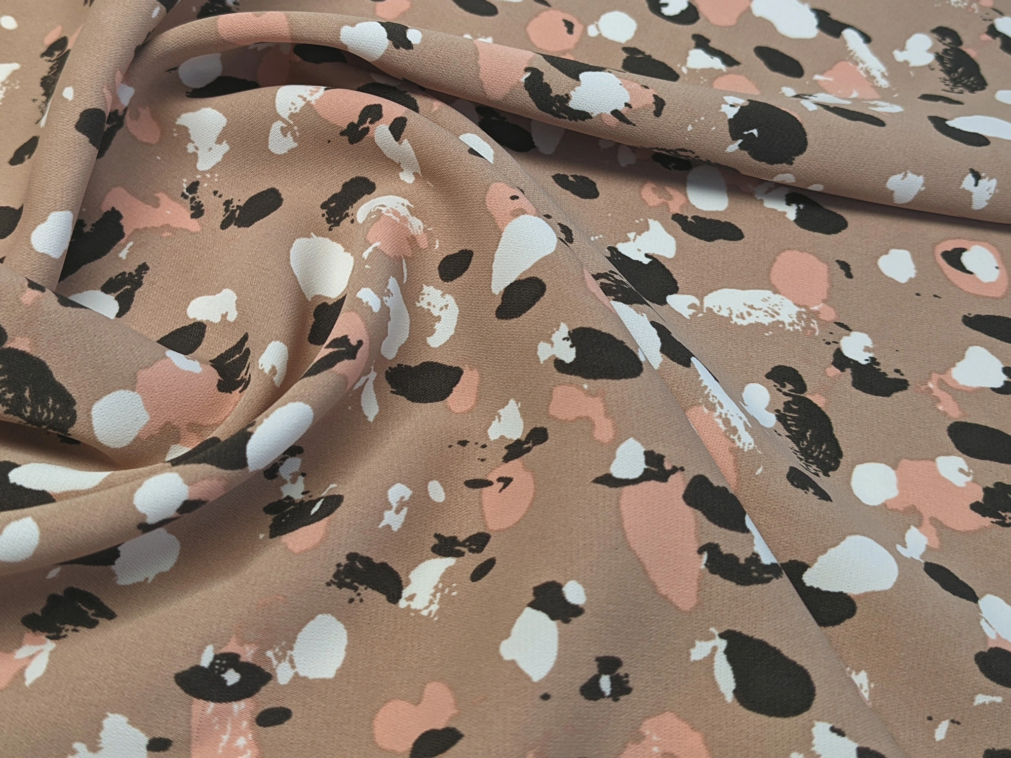 Креп шелк - тонкая, струящаяся ткань крепового плетения с матовой, шелковистой поверхностью. Материал не мнется, легко восстанавливается в исходную форму, упругий, прочный, непрозрачный на теле, скользящий, легкая эластичность присутствует вдоль и поперек полотна. Визуально - фактура ткани обладает едва заметной зернистостью, тактильно - гладкая, мягкая, приятная на ощупь. Ткань хорошо смотрится в драпировке.