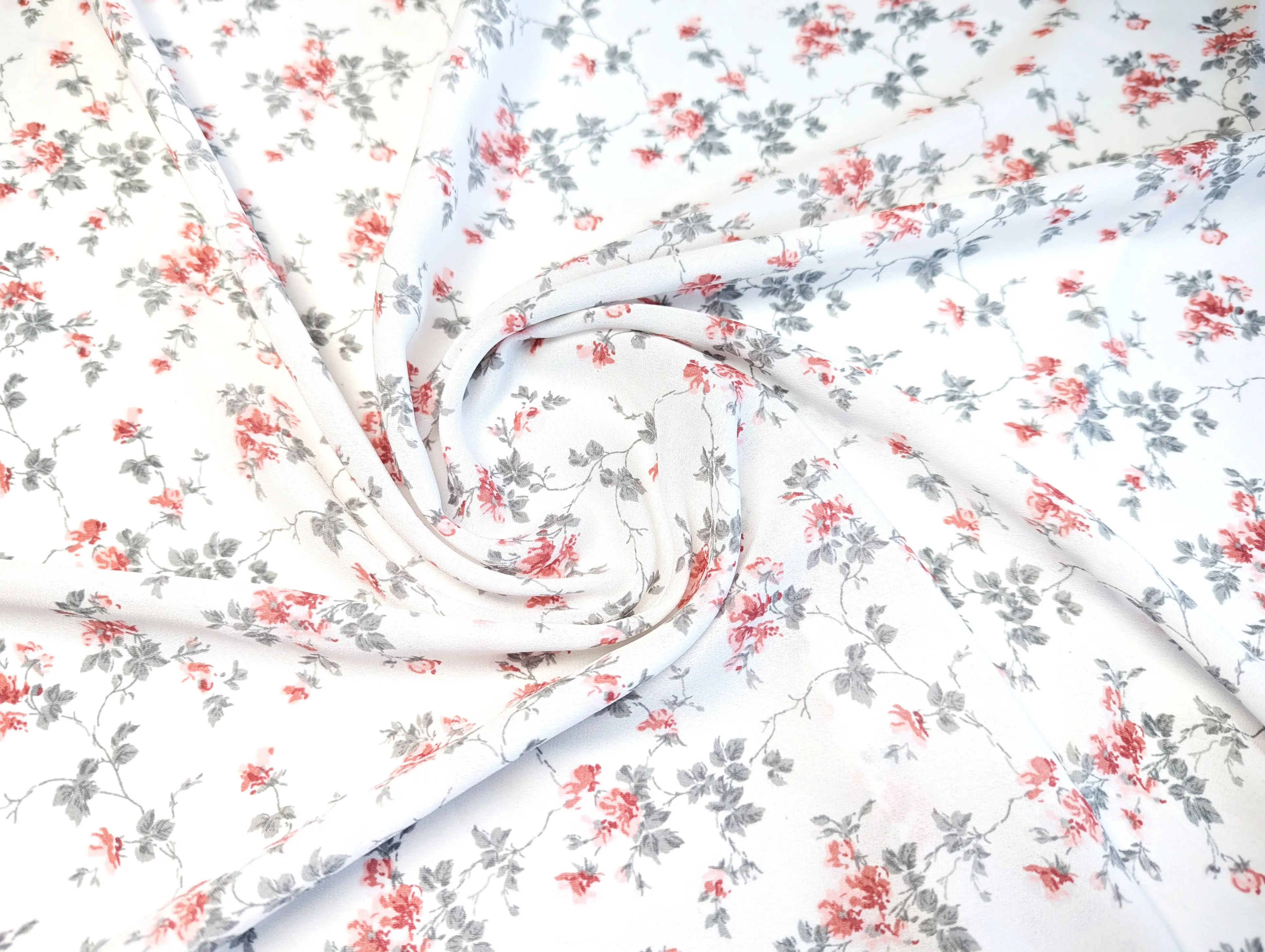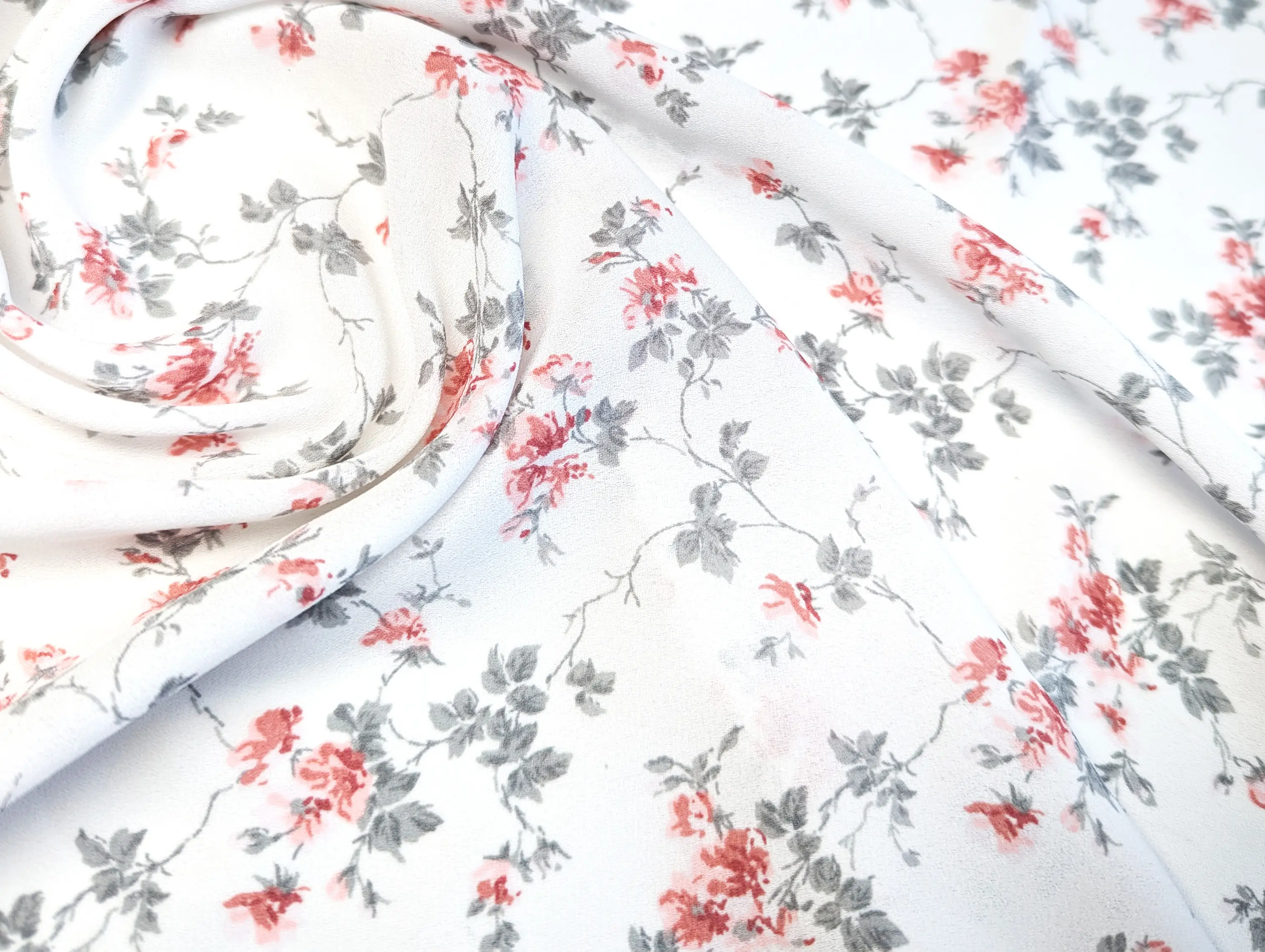 Креп шифон цветочки на веточке, молочный (отрез 1,5 м)