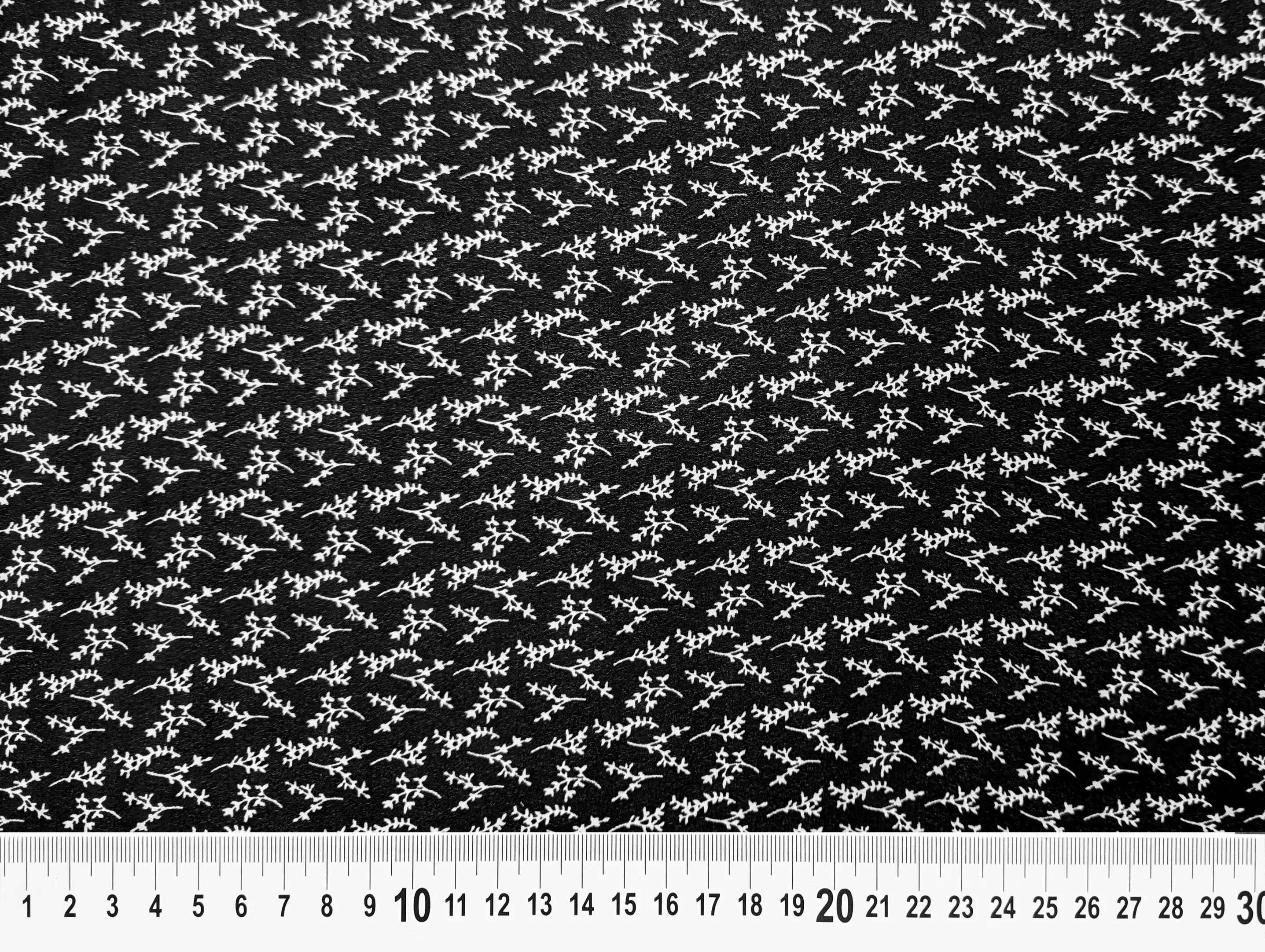 Креп шифон веточки, молочный с черным (отрез 1,5 м)