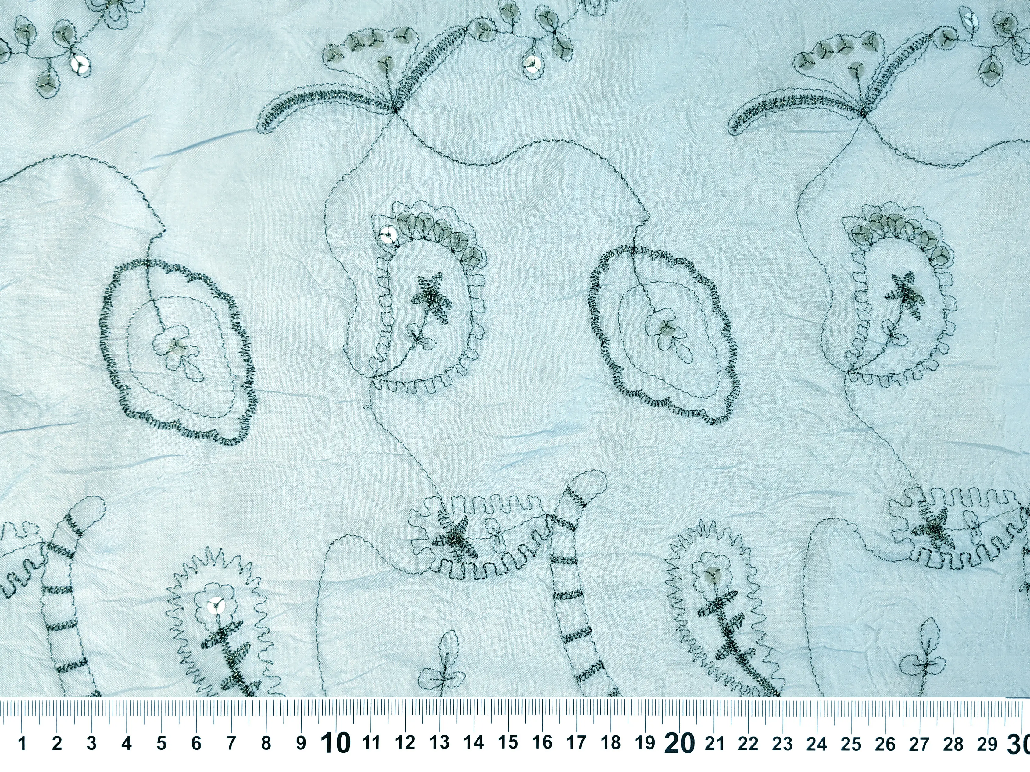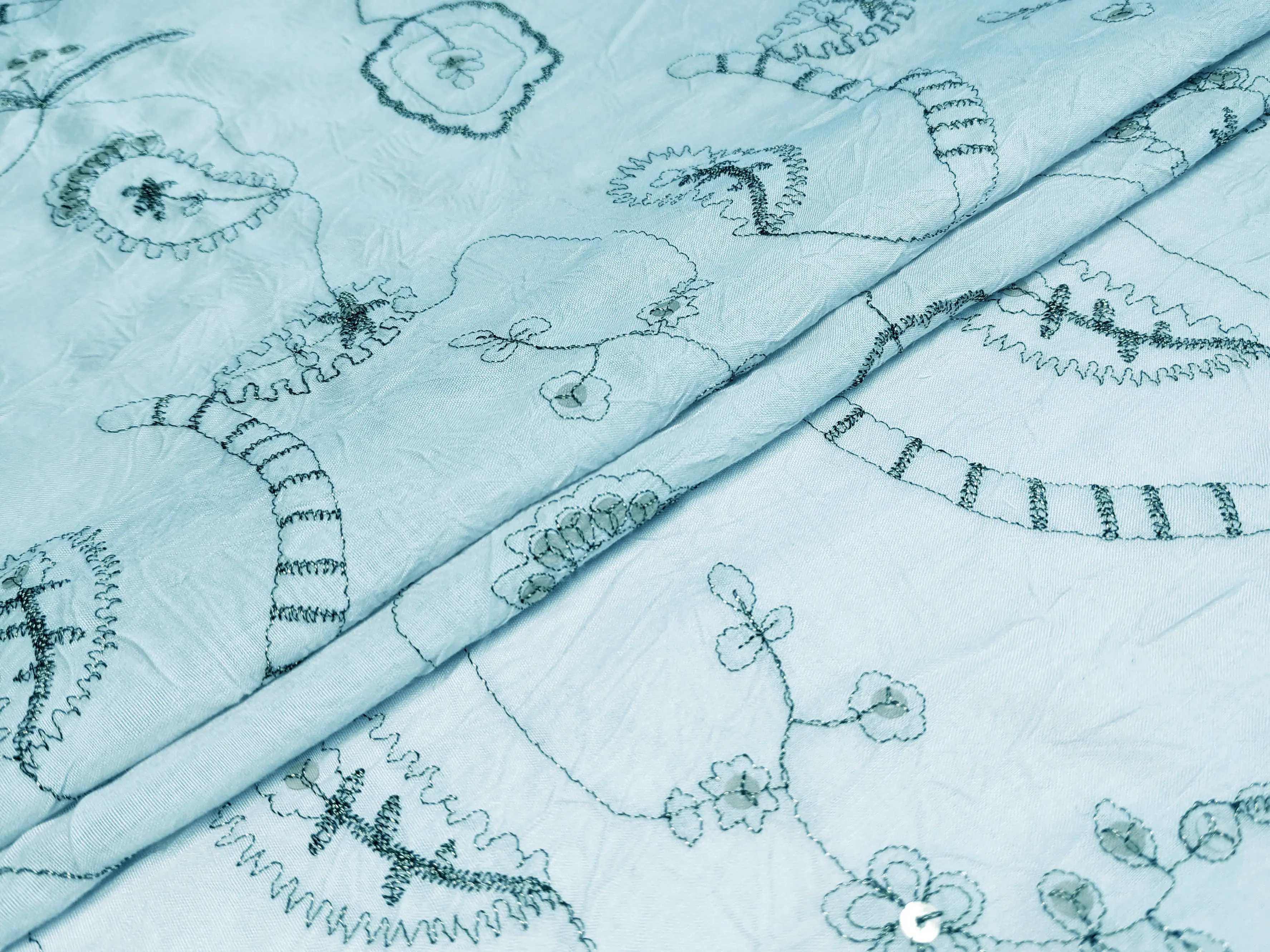 Крэш коттон пайетки вышивка веточки, голубой (отрез 2 м) (к33/1, б/а, д2 цв3)