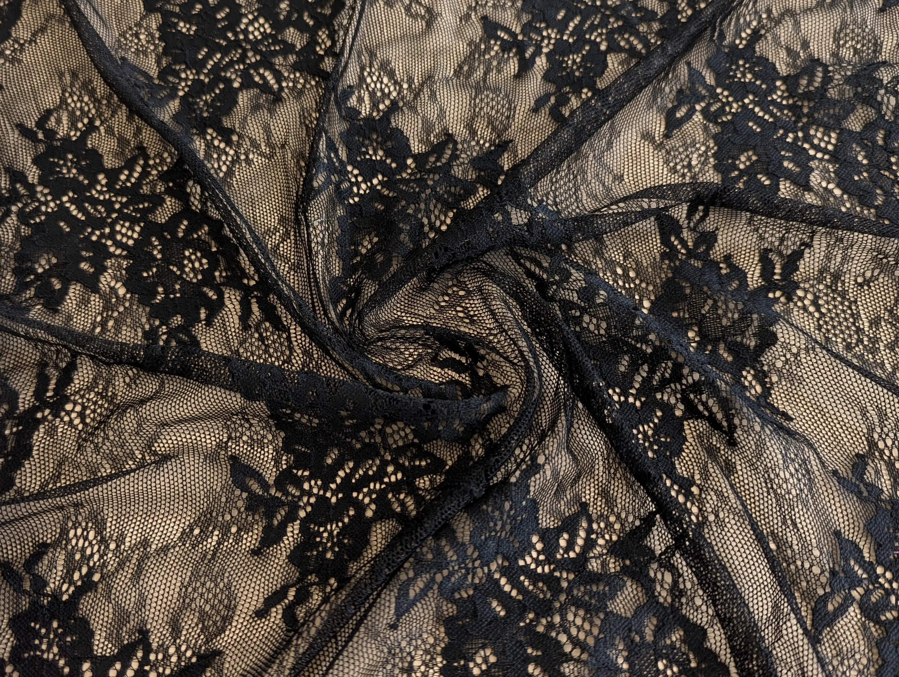Основа полотна стрейчевая мягкая сетка, рисунок сформирован в виде цветочного хаотичного принта.