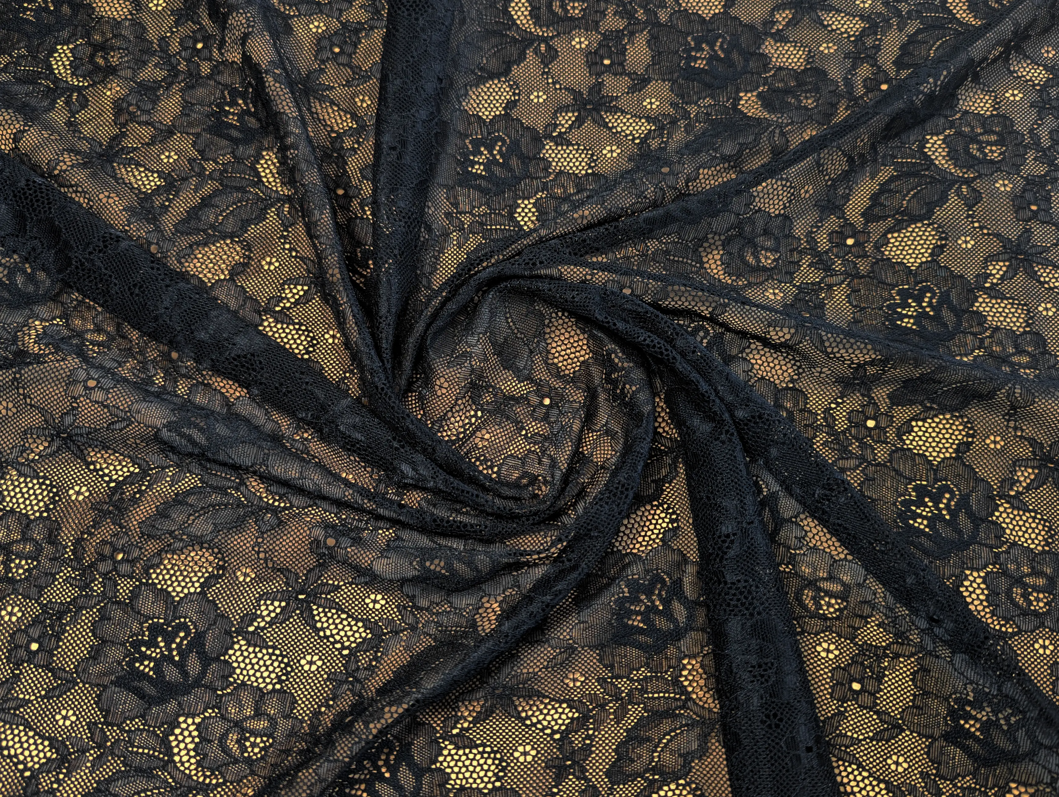 Основа полотна стрейчевая мягкая сетка, рисунок сформирован в виде цветочного хаотичного принта.