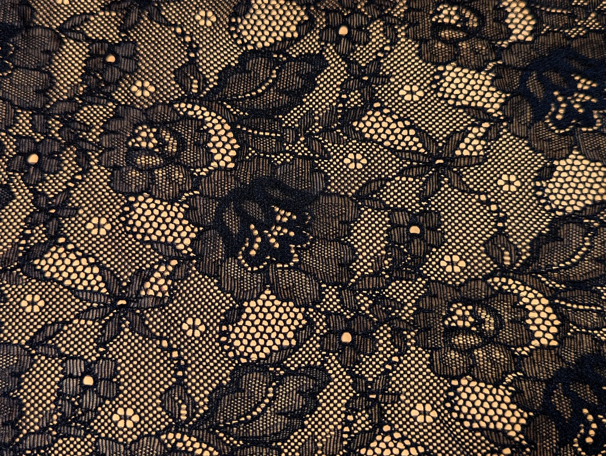 Кружево Венеция цветочный сад, черный (отрез 1,9 м)